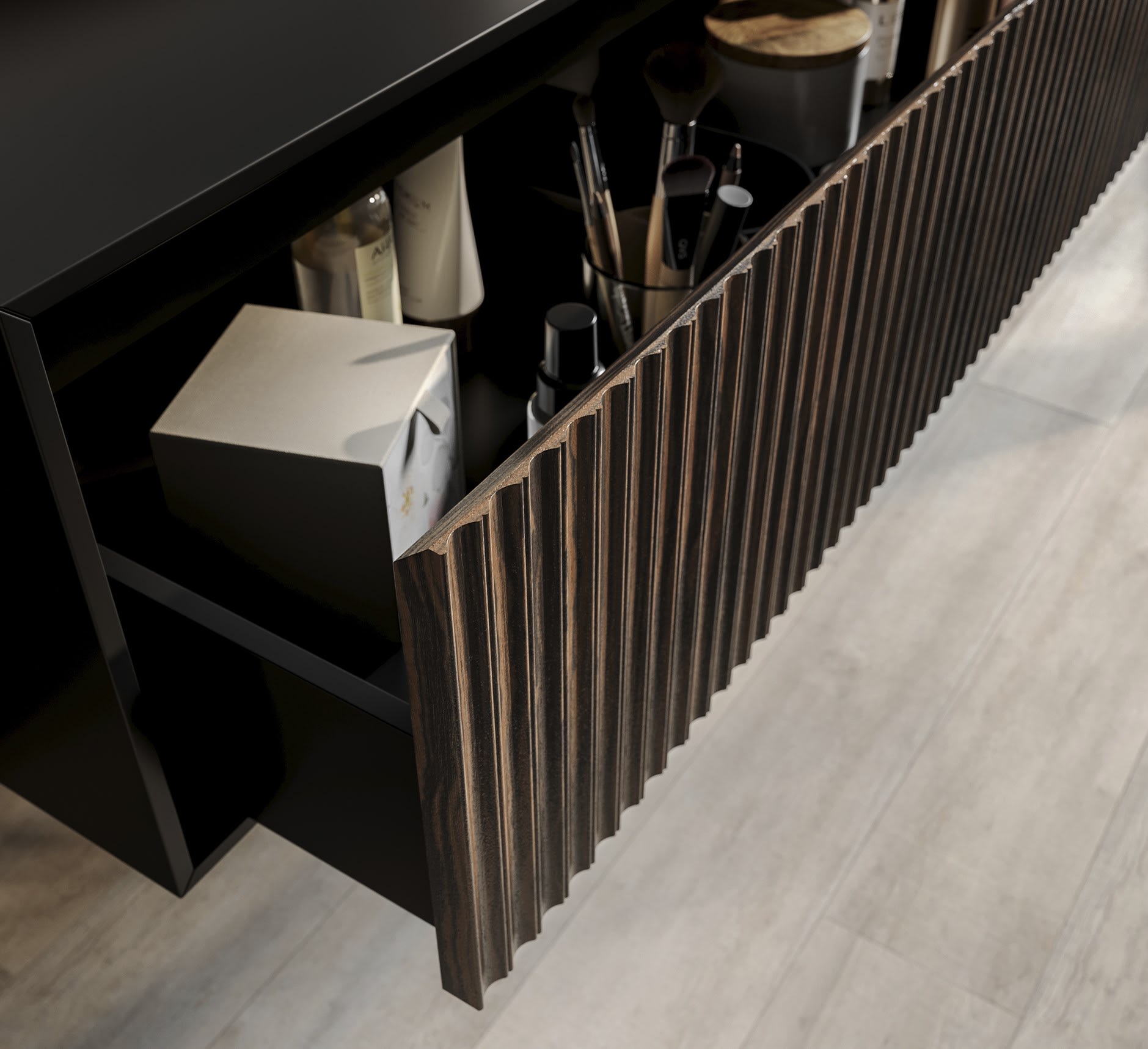 Perfect for use on cabinetry and furniture fronts, as well as on curved surfaces, our fluted Elegante collection is the ideal choice for those wanting to bring another dimension to interior spaces. Carefully milled, these veneers add elegance and interest to both vertical and horizontal spaces. Offering an array of colour options including a dramatic ebony or walnut, as well as classic oak or white oak, the possibilities for creating clean, bright finishes are limitless.