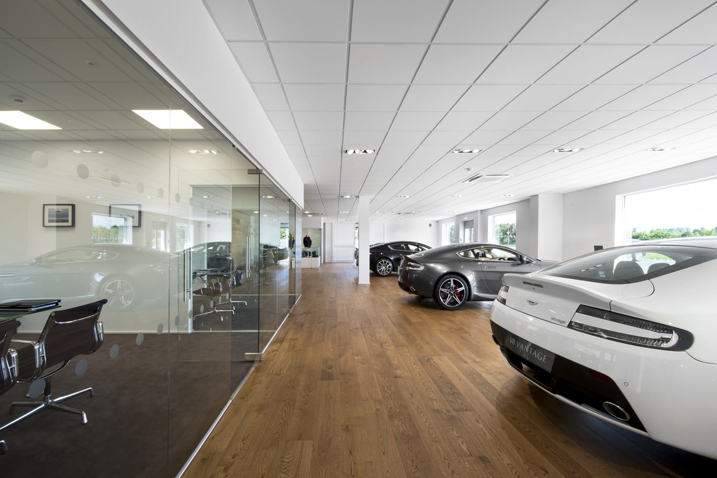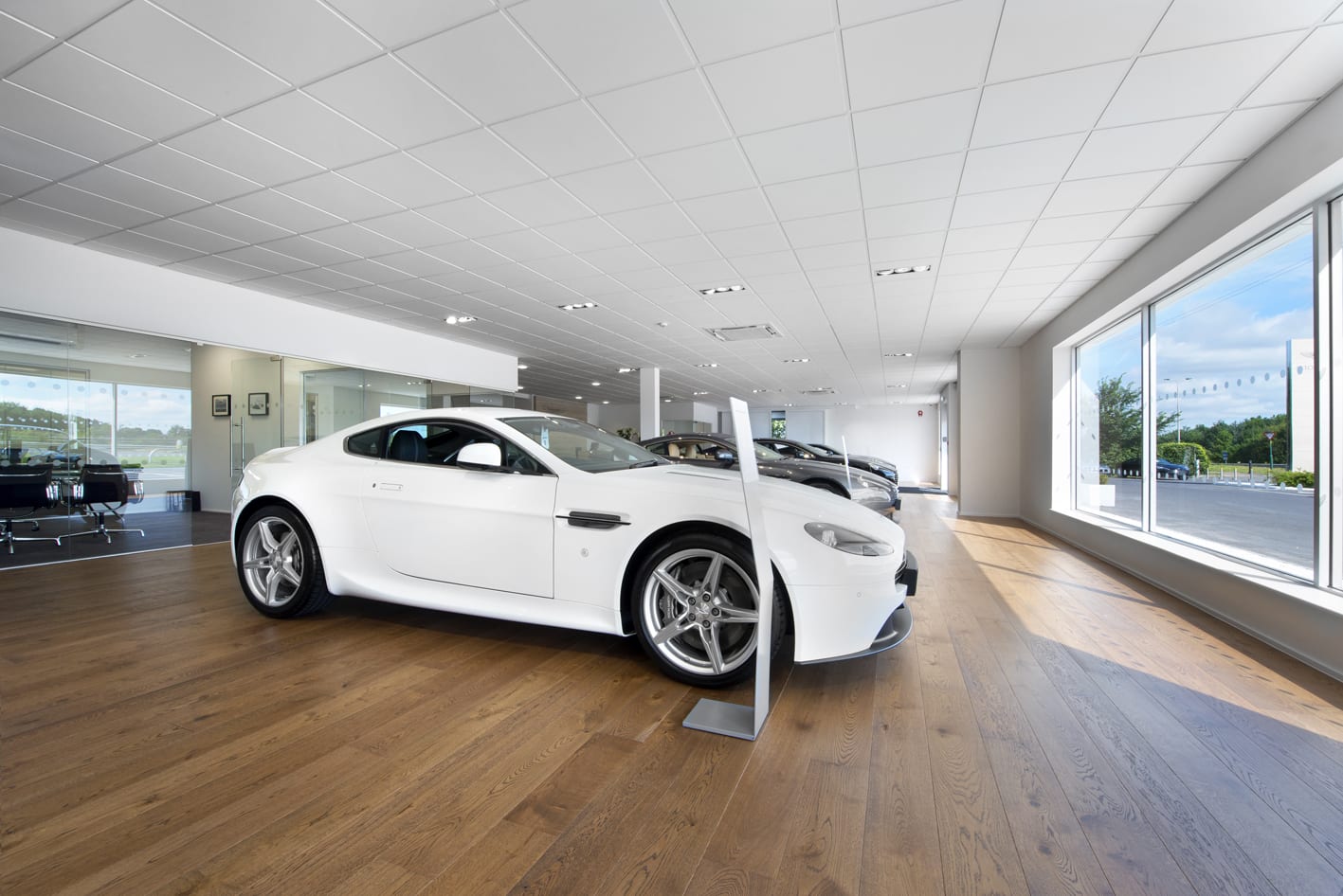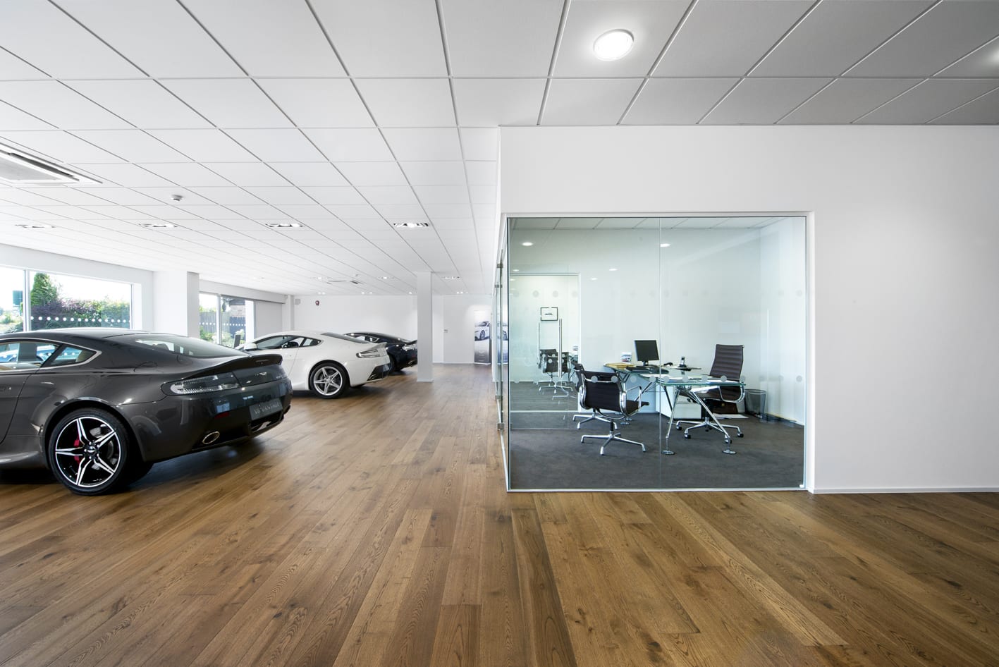 When selling one of the world’s most iconic sports cars you need a seminal showroom, so Aston Martin stipulates that in theirs wood floors must be fitted throughout.