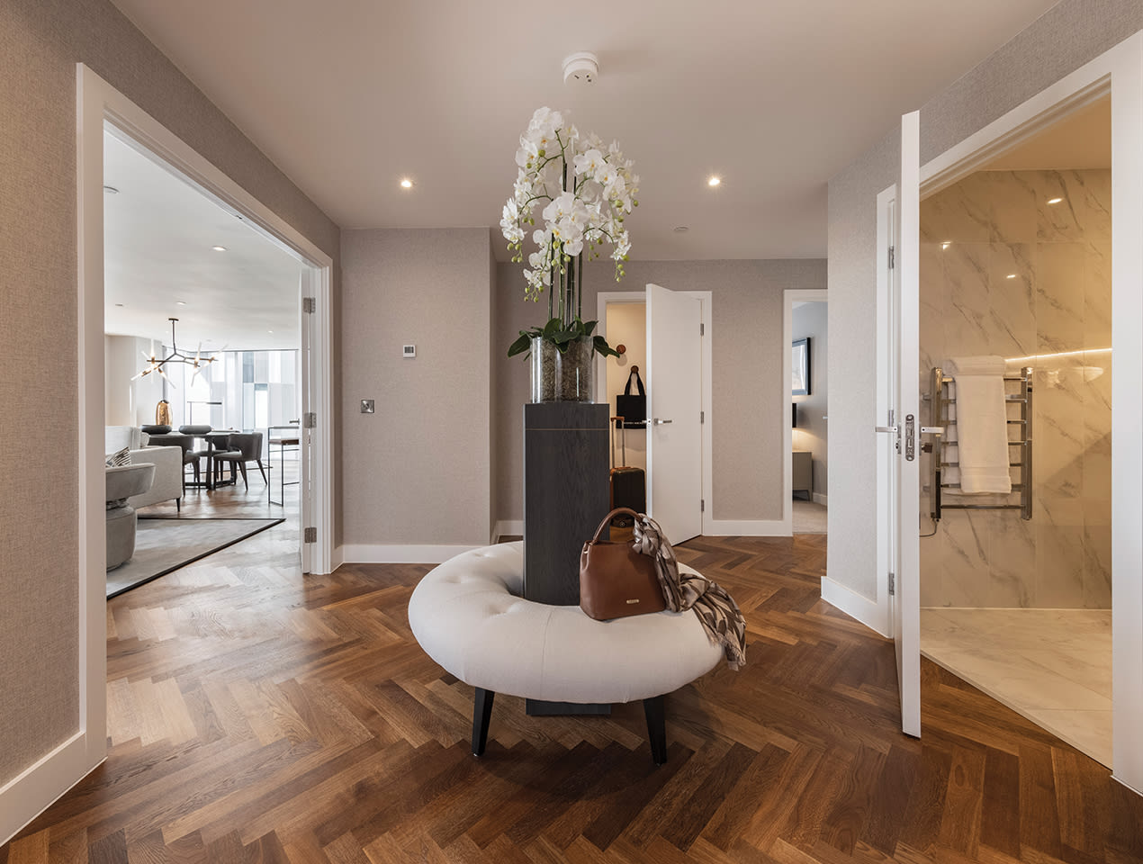 The wood flooring has been used across the main living area, hallway and kitchen – delivering a sophisticated and superior aesthetic.