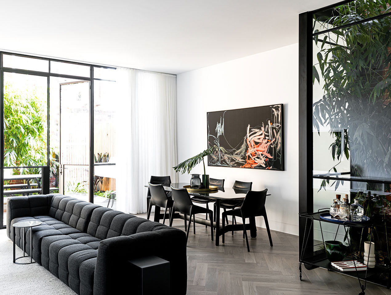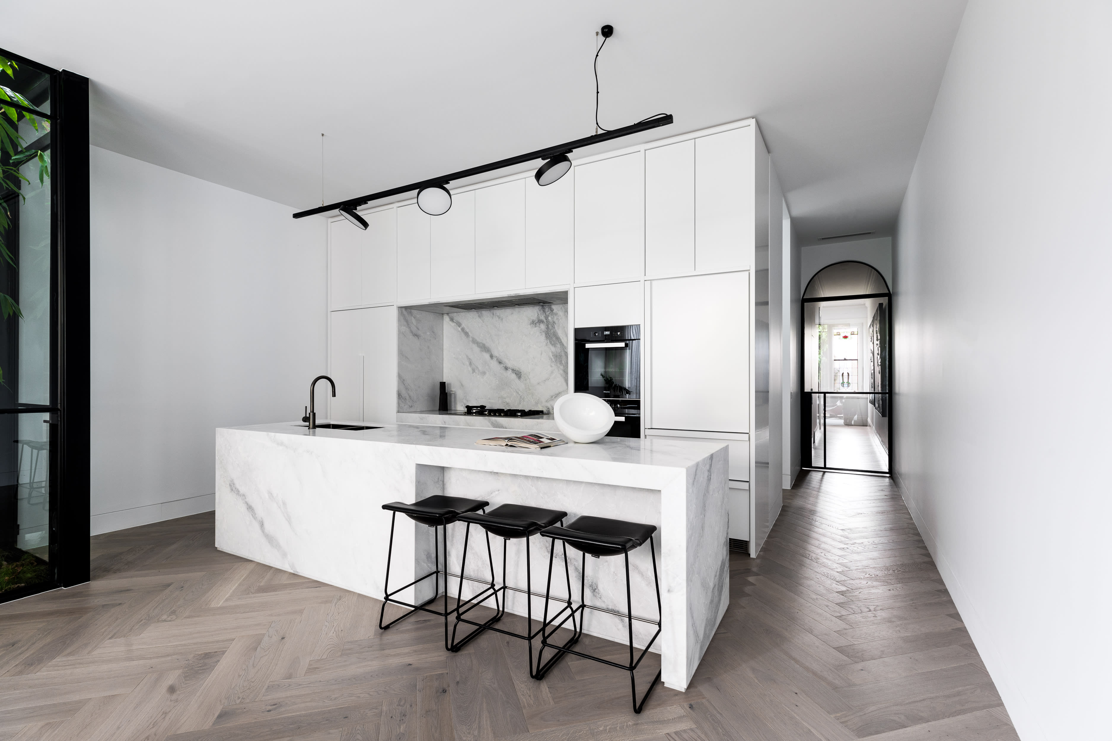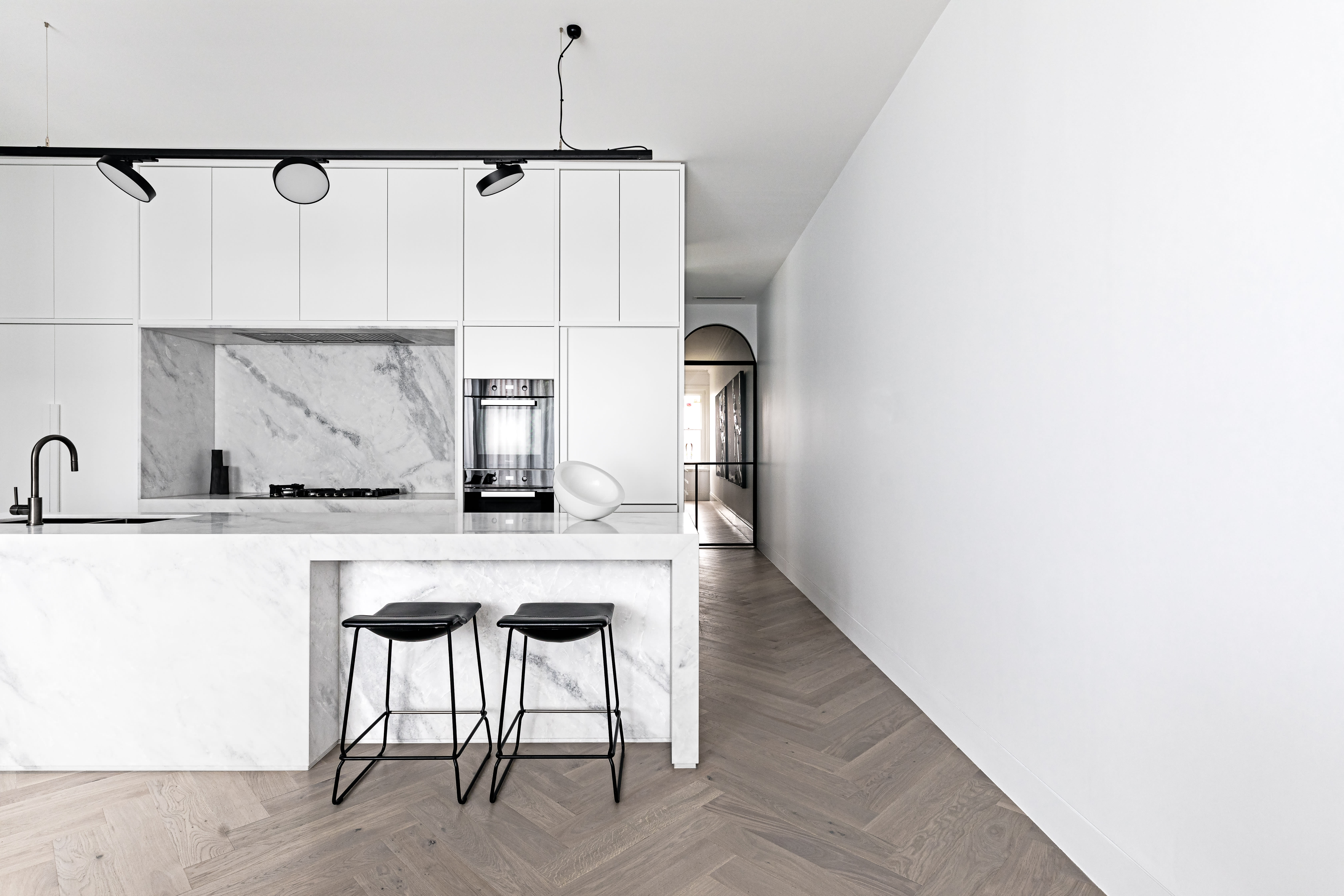 This monochromatic marvel located in Melbourne's Milld Park, is the work of Zerni Projects, who took on the beautiful Period home project and breathed new life and light into it. Havwoods Ascot Herringbone timber flooring was selected to feature throughout, in order to bring some character and richness into the contemporary design.
