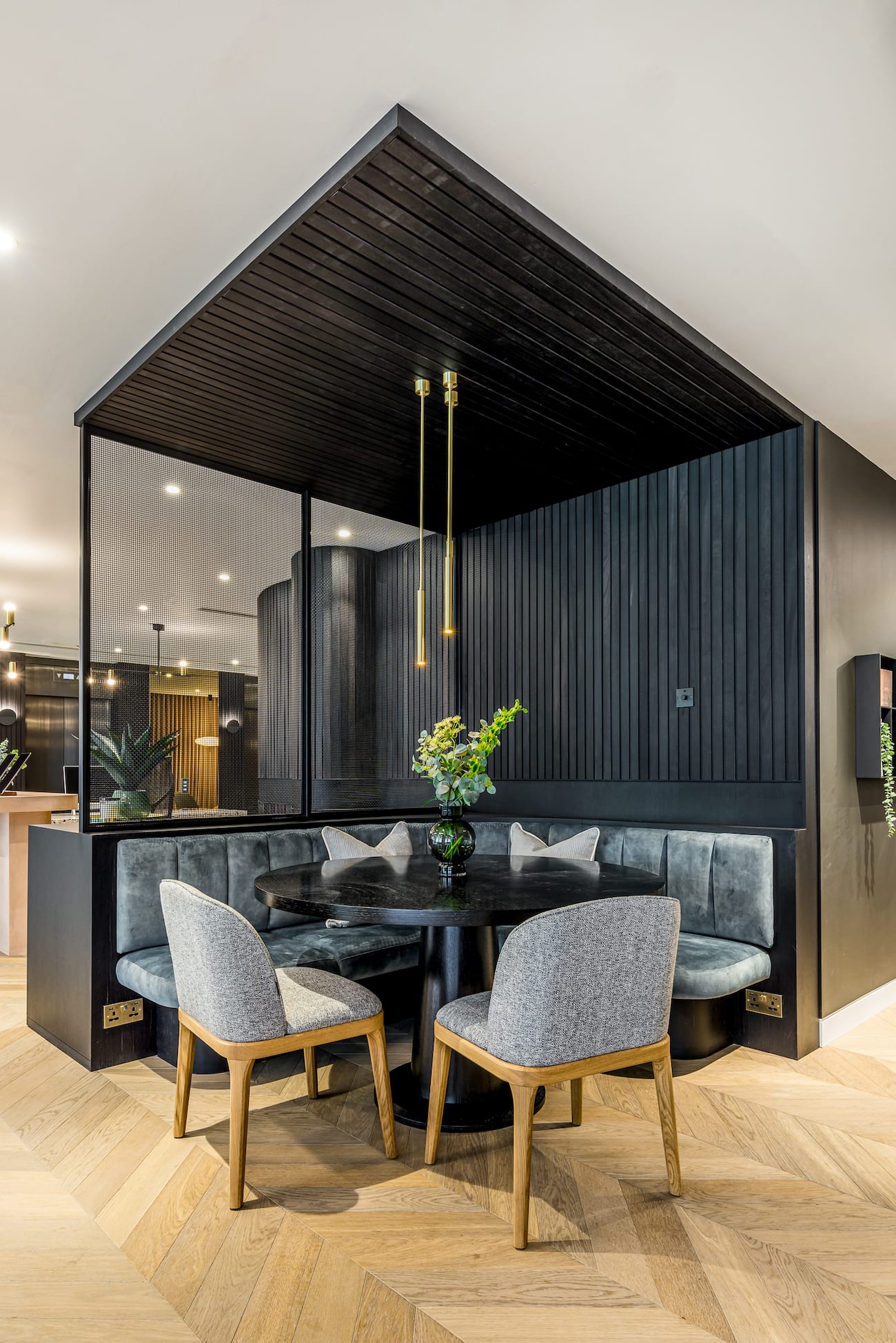 Havwoods’ Fendi Prime 120mm Chevron flooring was chosen for its contemporary yet timeless appeal and was used to create clear zones, whilst maintaining an open plan feel. The office incorporates various textures and colours via its furniture and décor, so it was important to introduce light and versatile flooring that complemented the warm colour palette.