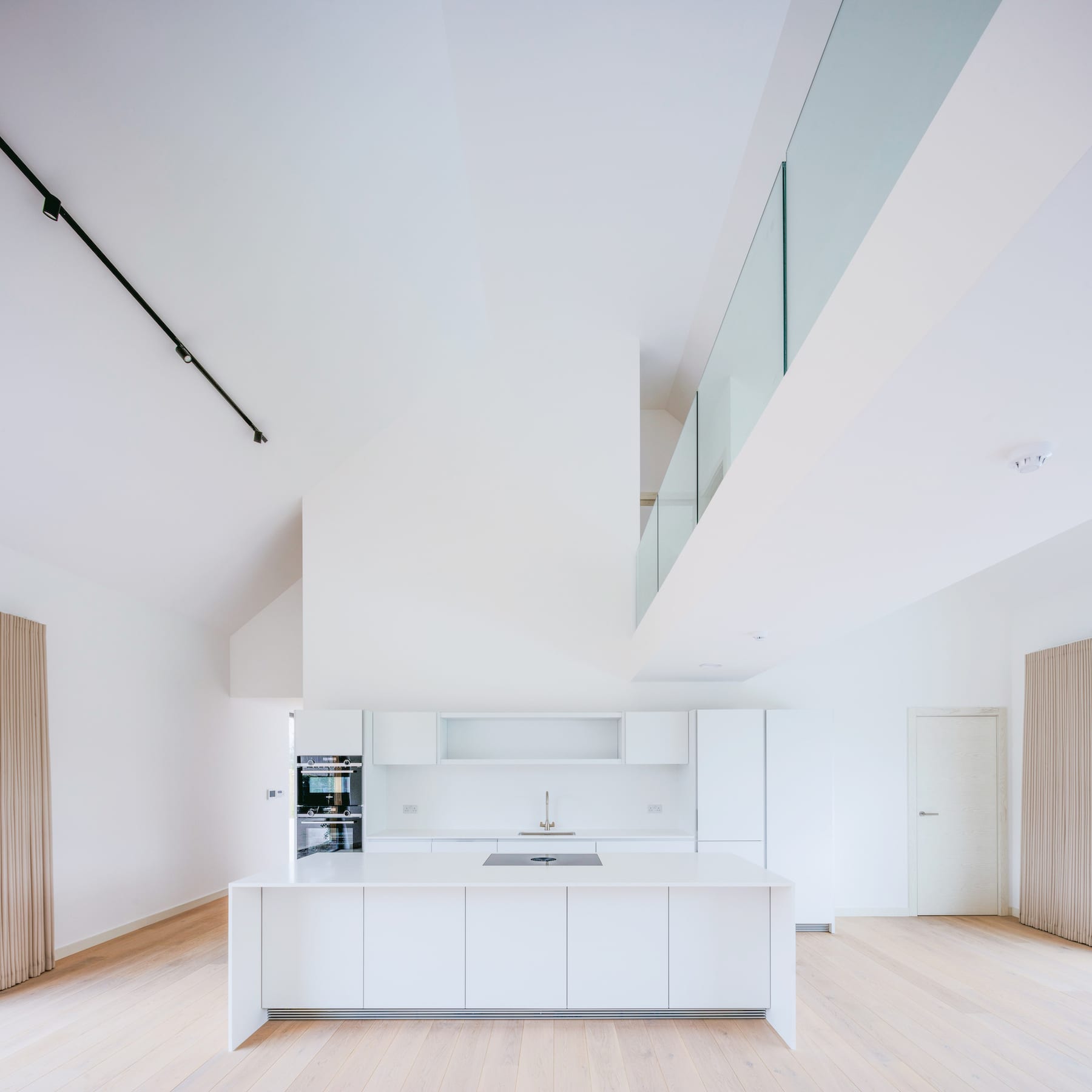 For the interior of all four units, Havwoods multi-layered engineered Blanco Character 180mm 1-Strip boards have been commissioned to pair with the neutral, pared-back design scheme. Adding important texture that creates a cohesive feeling throughout all spaces, the soft finish and platinum colourway complement the other finishes featured in the dwellings – including a Bulthaup Kitchen, Minoli tiles and high-end sanitaryware from Kallums.