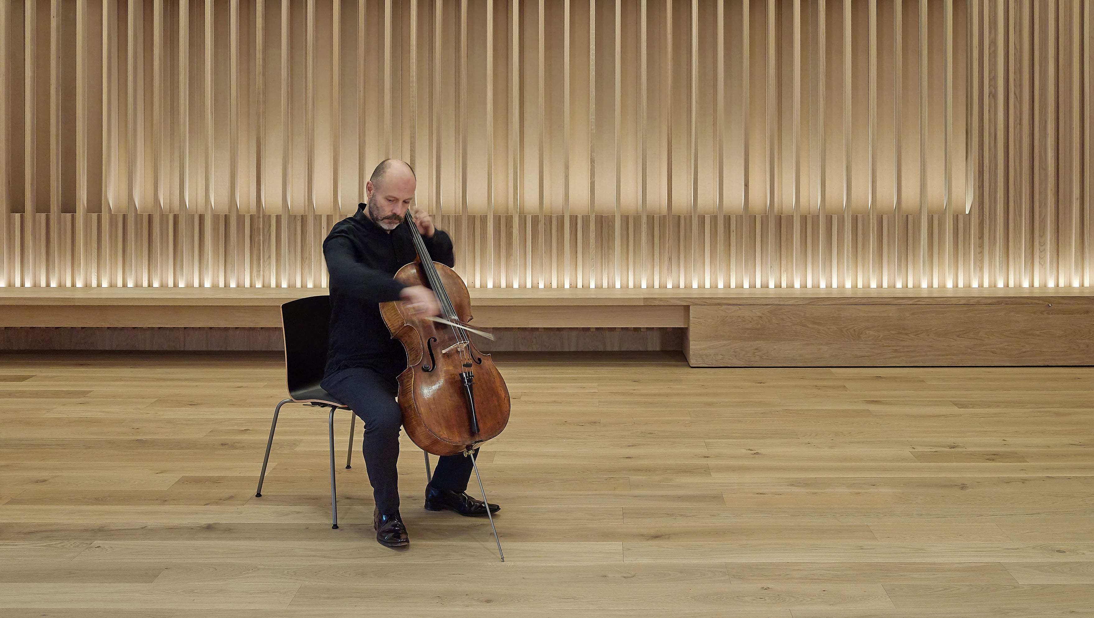 The extension brief included rehearsal, performance, education and ancillary spaces for the Halle Orchestra and Choir, complemented by a café space addressing the public realm. With blackened steel plates extending into the reception, the tactile interfaces of the building were carefully considered to include brushed gold handrails and door ironmongery, while the café also included European Oak tables with Tradition Pavilion chairs finished in blackened timber and Raf Simons Kvadrat fabric.