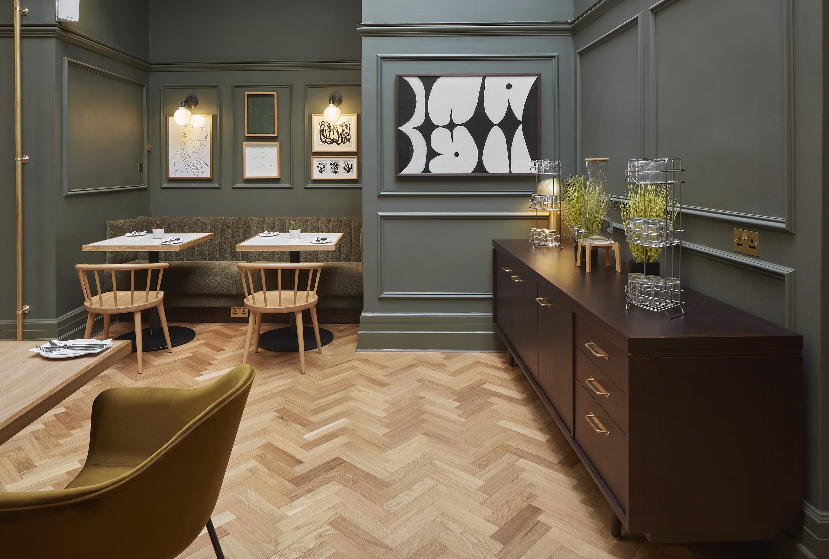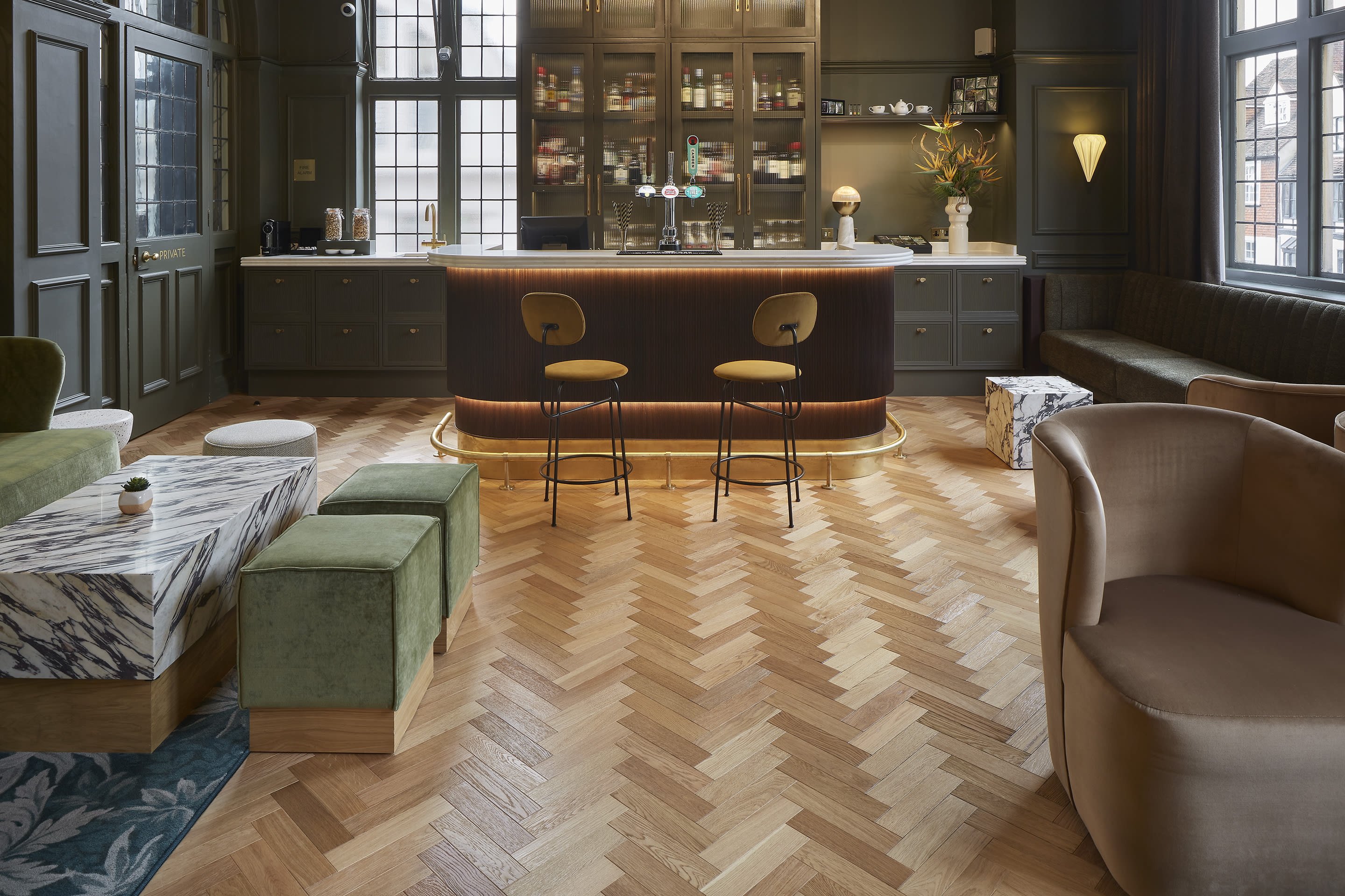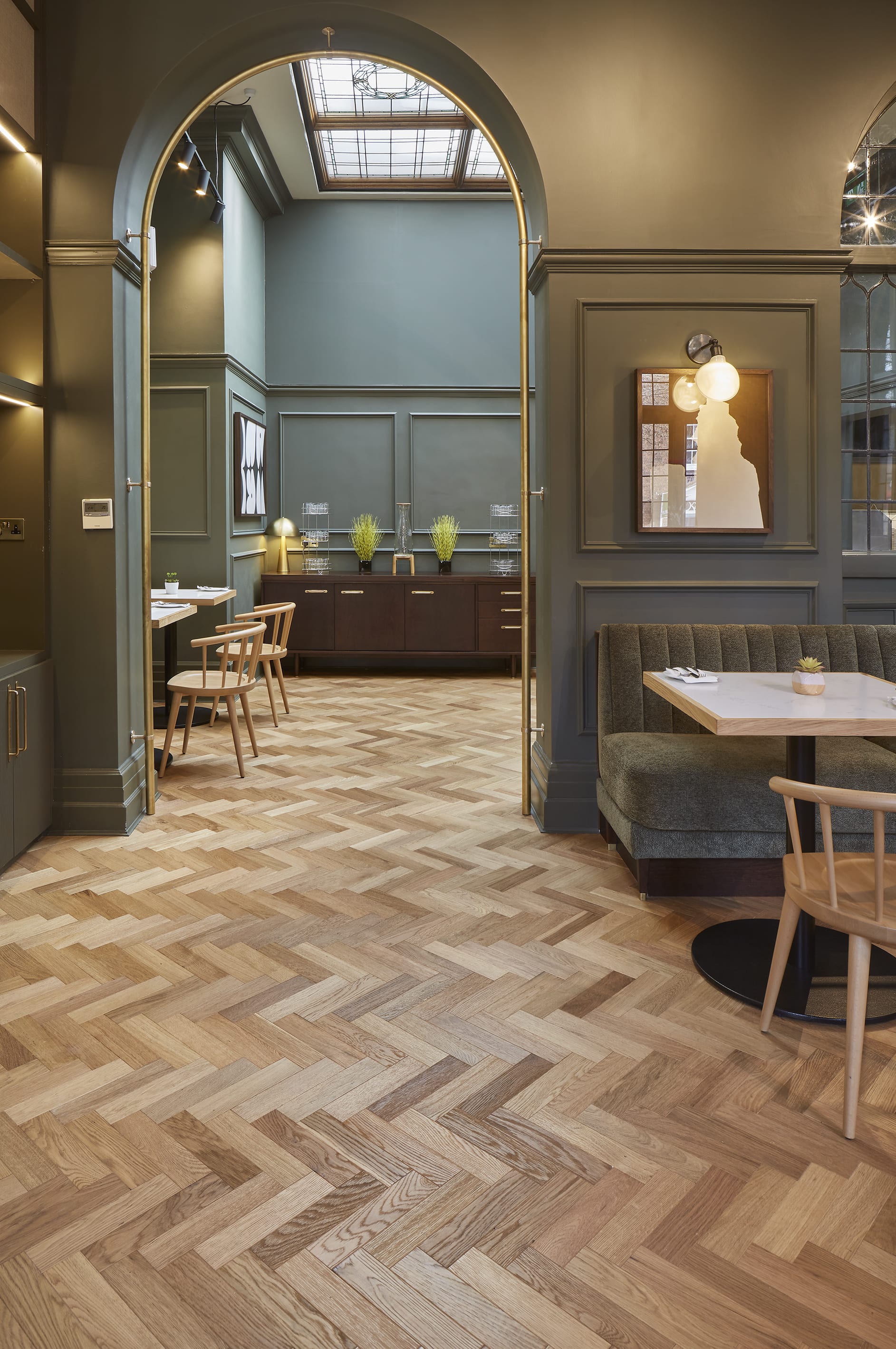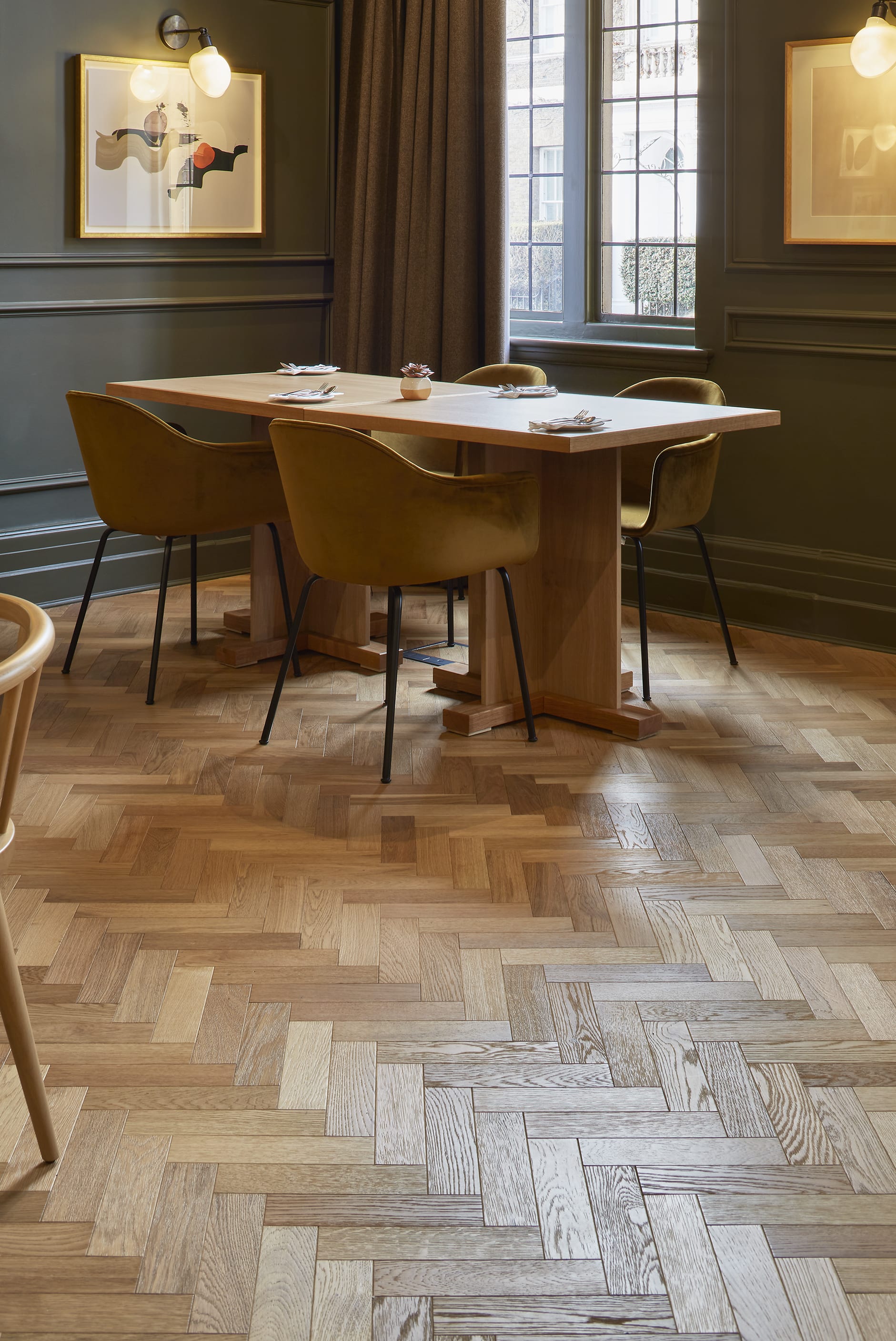 To complete the look and deliver a herringbone floor covering with an abundance of elegance, Havwoods was specified to provide a solution across the reception, bar area and also main restaurant.