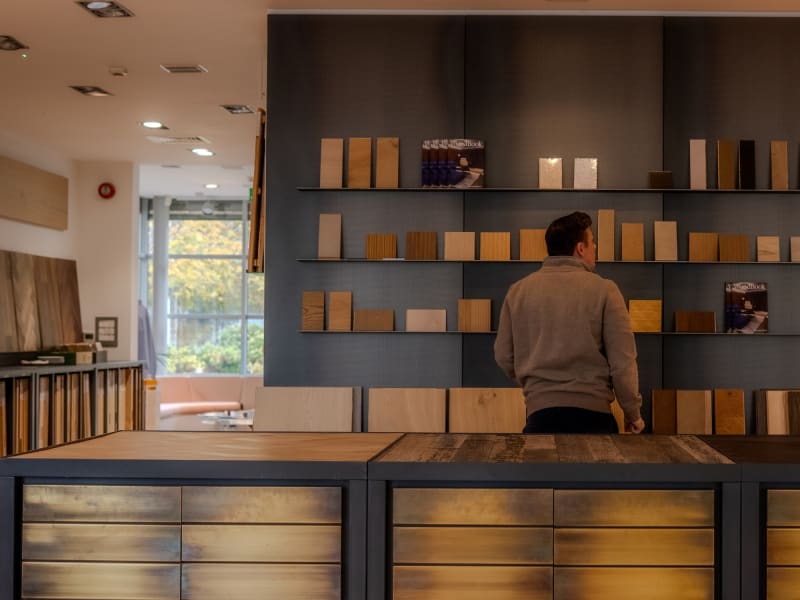 There’s nothing better than experiencing the natural beauty of wood in person. With over 200 premium timber flooring products and hundreds of luxury wood surfaces, our knowledgeable showroom team are here to guide you through a playground of full-size panels, help you compare your favourite surfaces and talk through your ideas – all over a cup of tea or coffee.