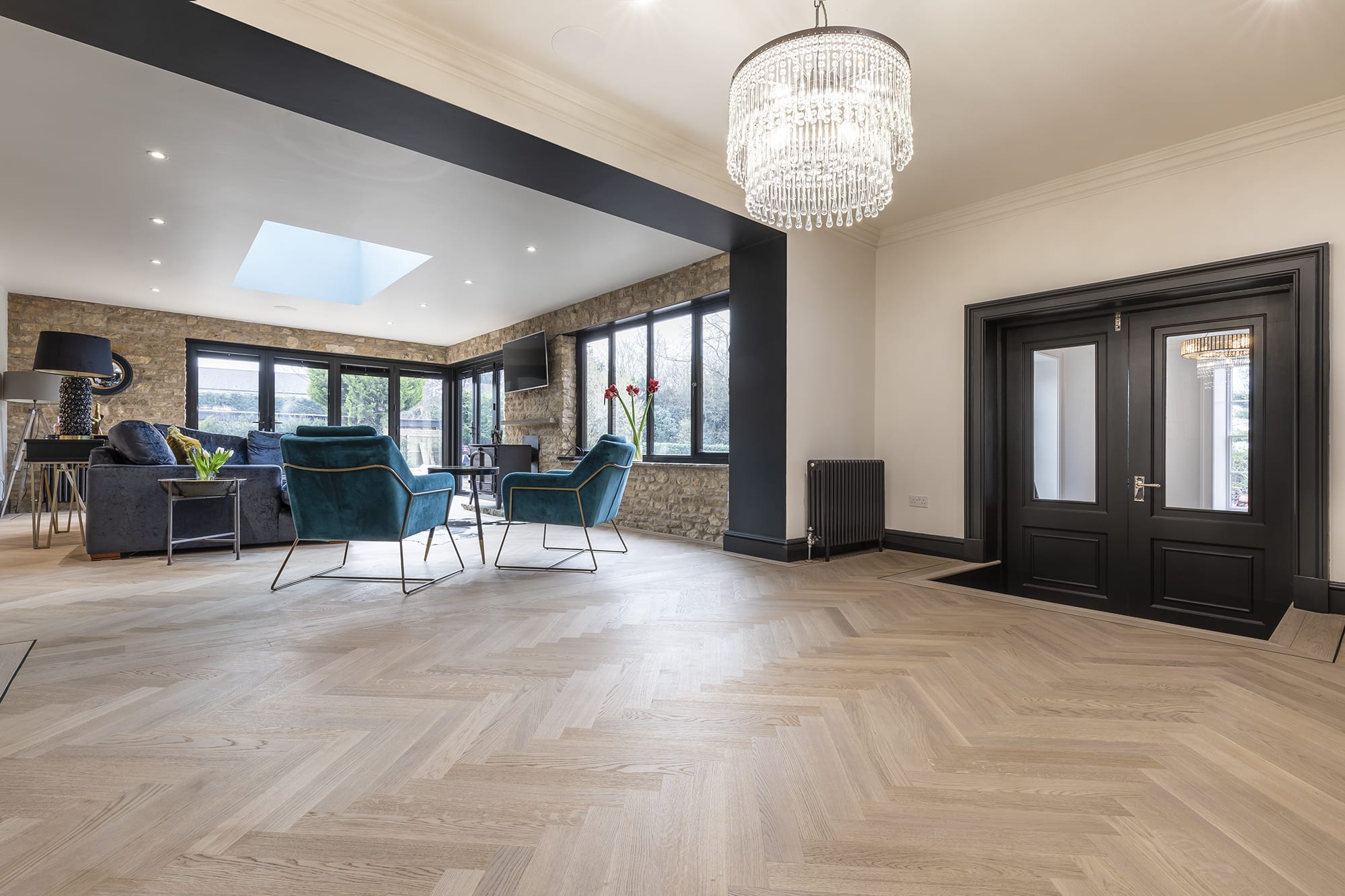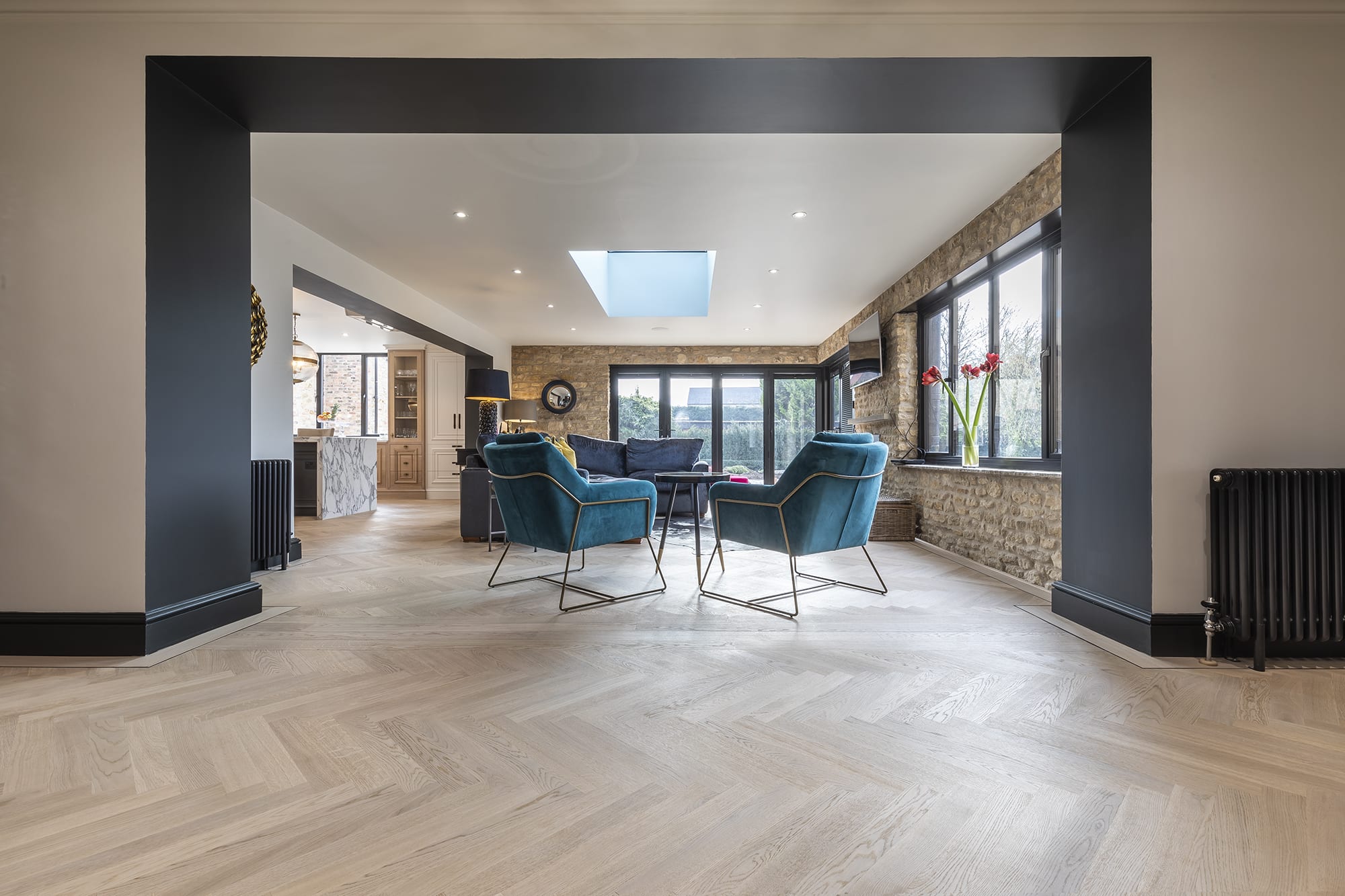 The property was a former farmhouse that has been transformed into a stunning family home with modern amenities while still retaining its original character. The installation of the wood flooring played a crucial role in achieving a cohesive and elegant look that complements the property's existing characteristics.