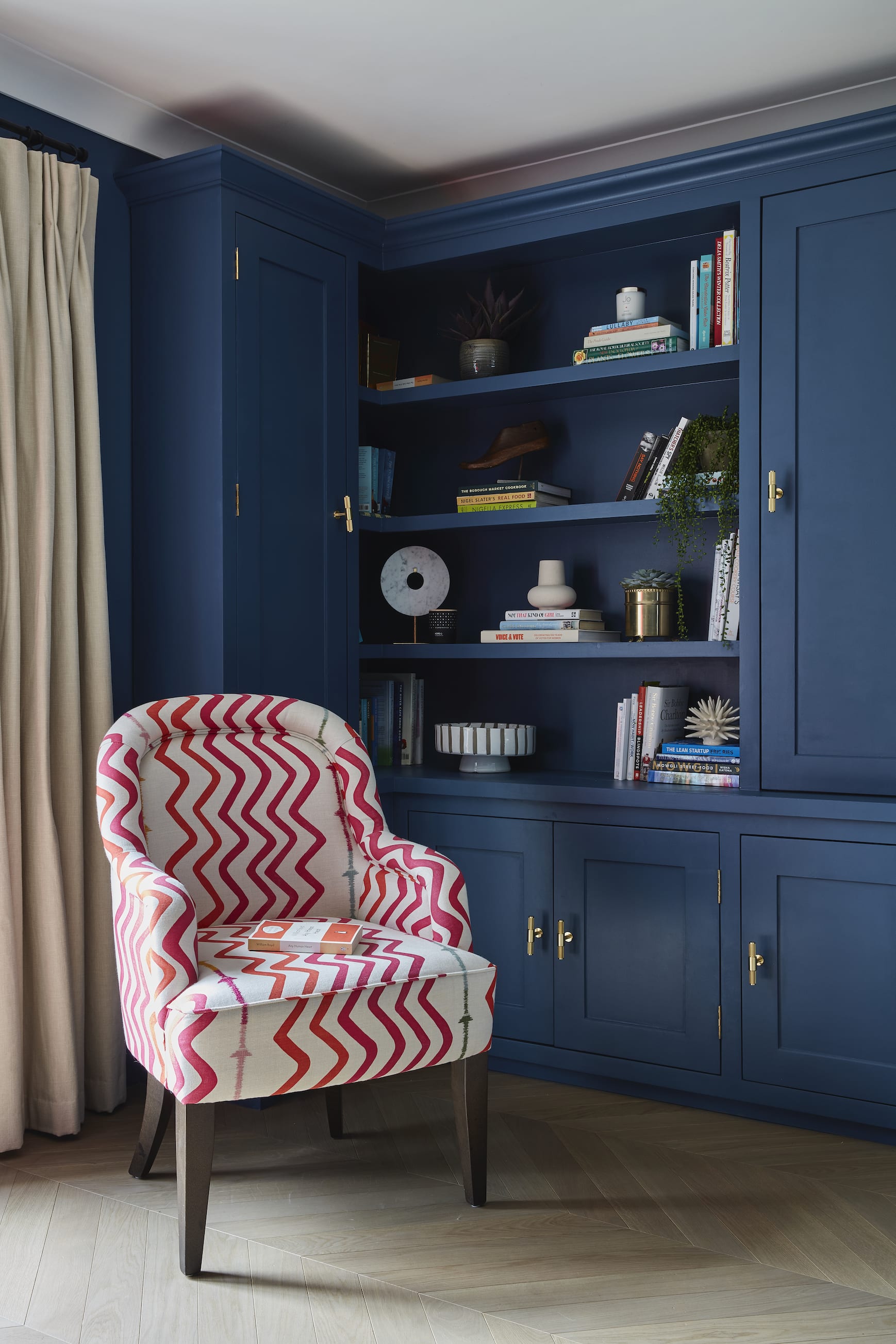 Redesigned to accommodate remote working, relaxing and watching TV, the entire living space was reconfigured to allow for these separate zones - with bespoke joinery and integrated storage to complete this multi-functional space.