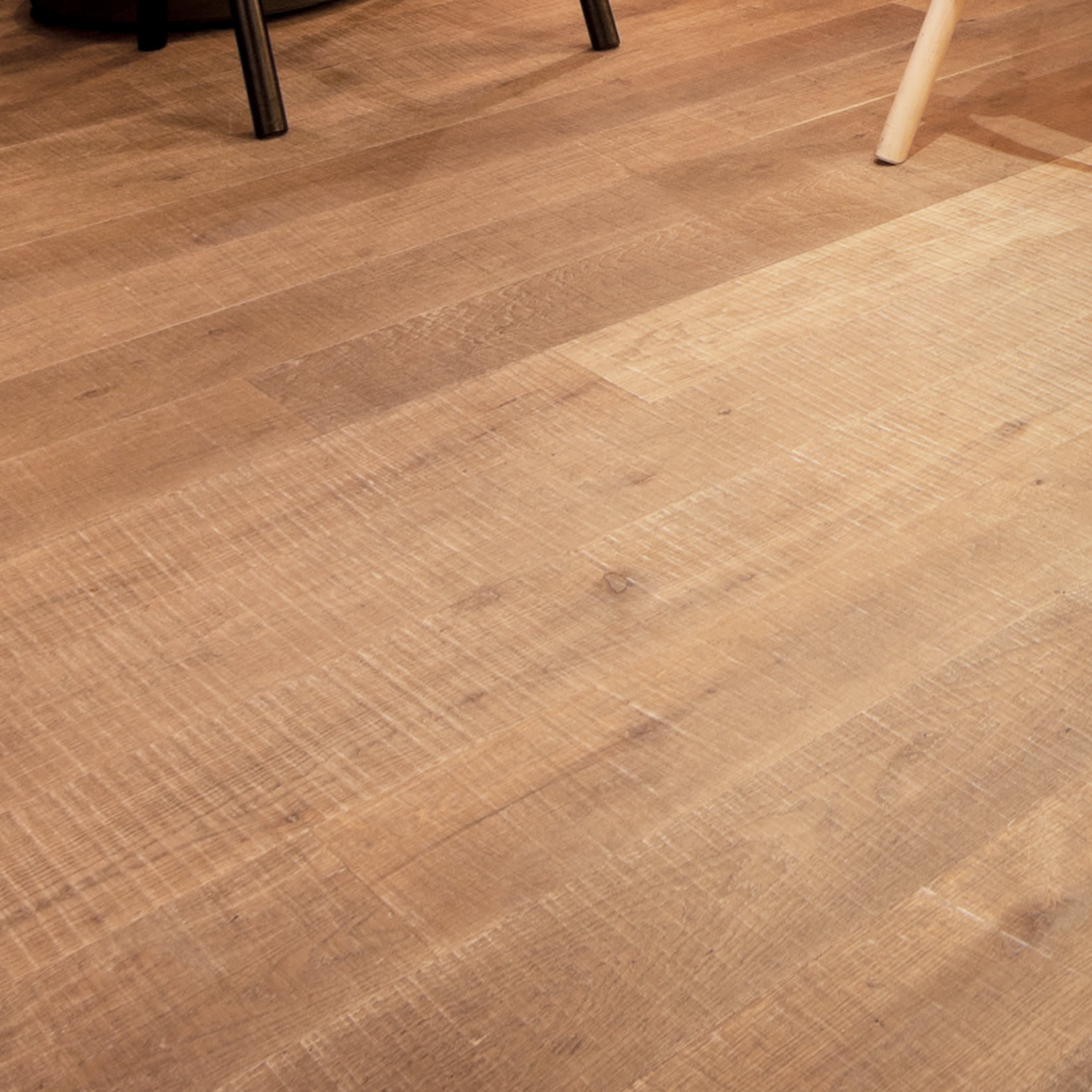 This bustling branch features ample natural wood to balance the vibrant color scheme, using Havwoods' Grove flooring: a plank with a warm, subtle grey-brown hue and an intriguing grain accentuated by cross-sawing for a modern distressed look. The UV-cured Hardwax Oil finish provides a highly durable surface, ideal for demanding applications.