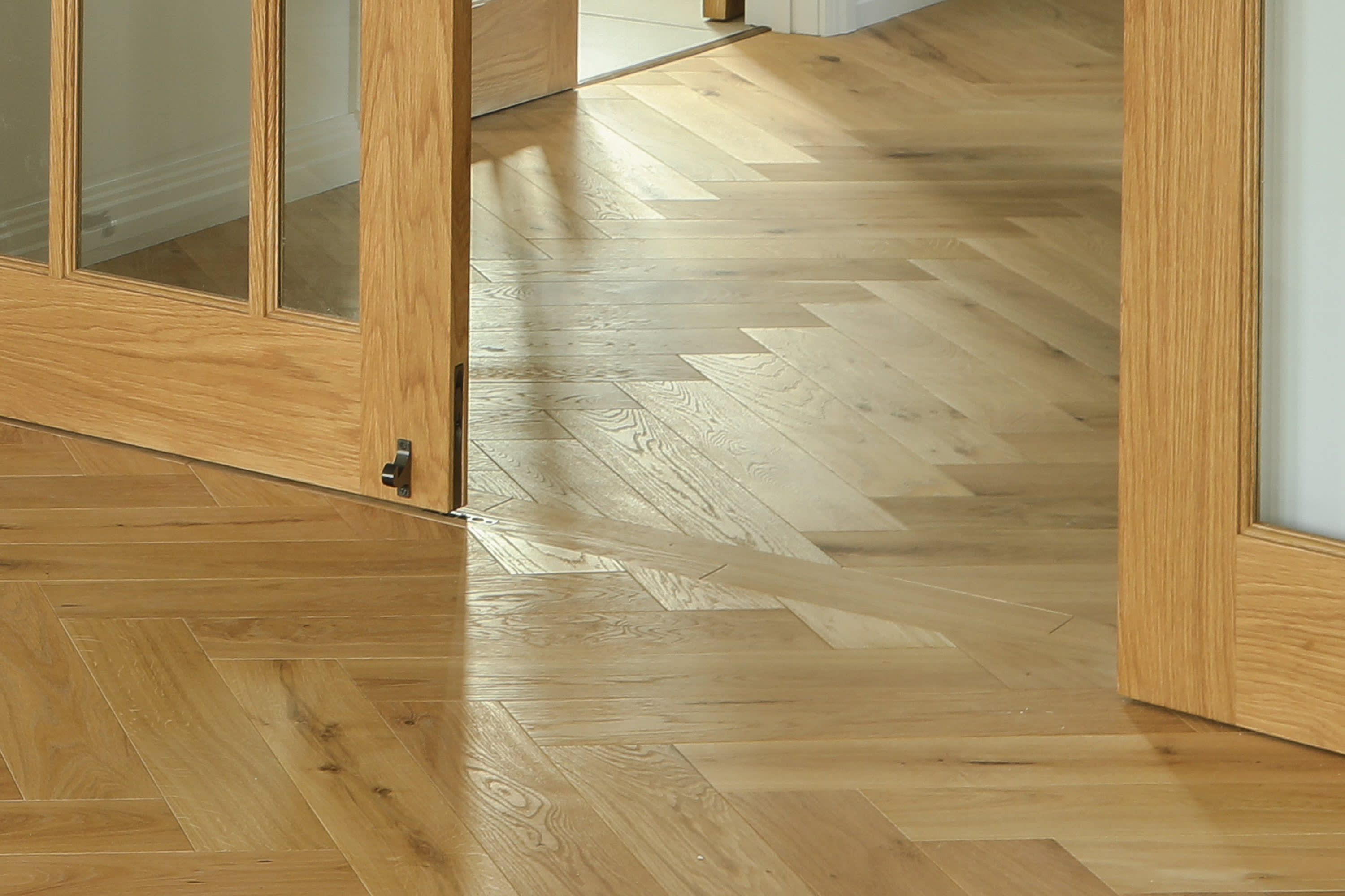 Used throughout the main living area, hallway and entranceway, Havwoods’ harmonious Cedro Character boards in a Herringbone pattern have been specified to give the interior a distinctive and sophisticated appeal.