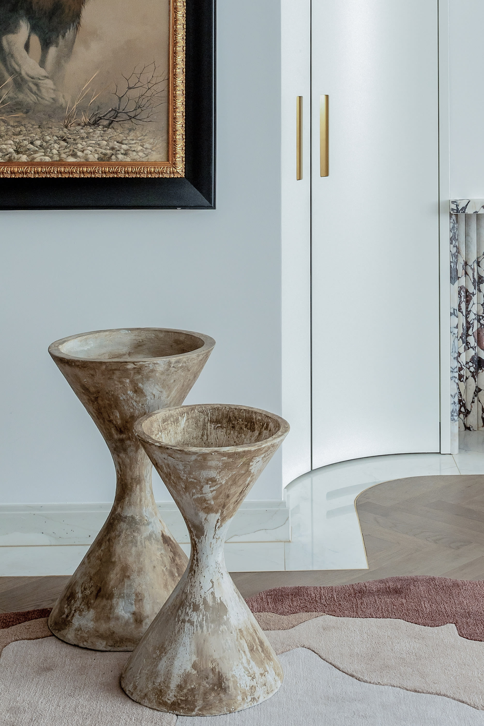 Art Deco architectural details, curved furniture silhouettes and exquisite brass and marble finishes create a decadent interior that combines hints of Ugandan heritage with a pastel colour palette.