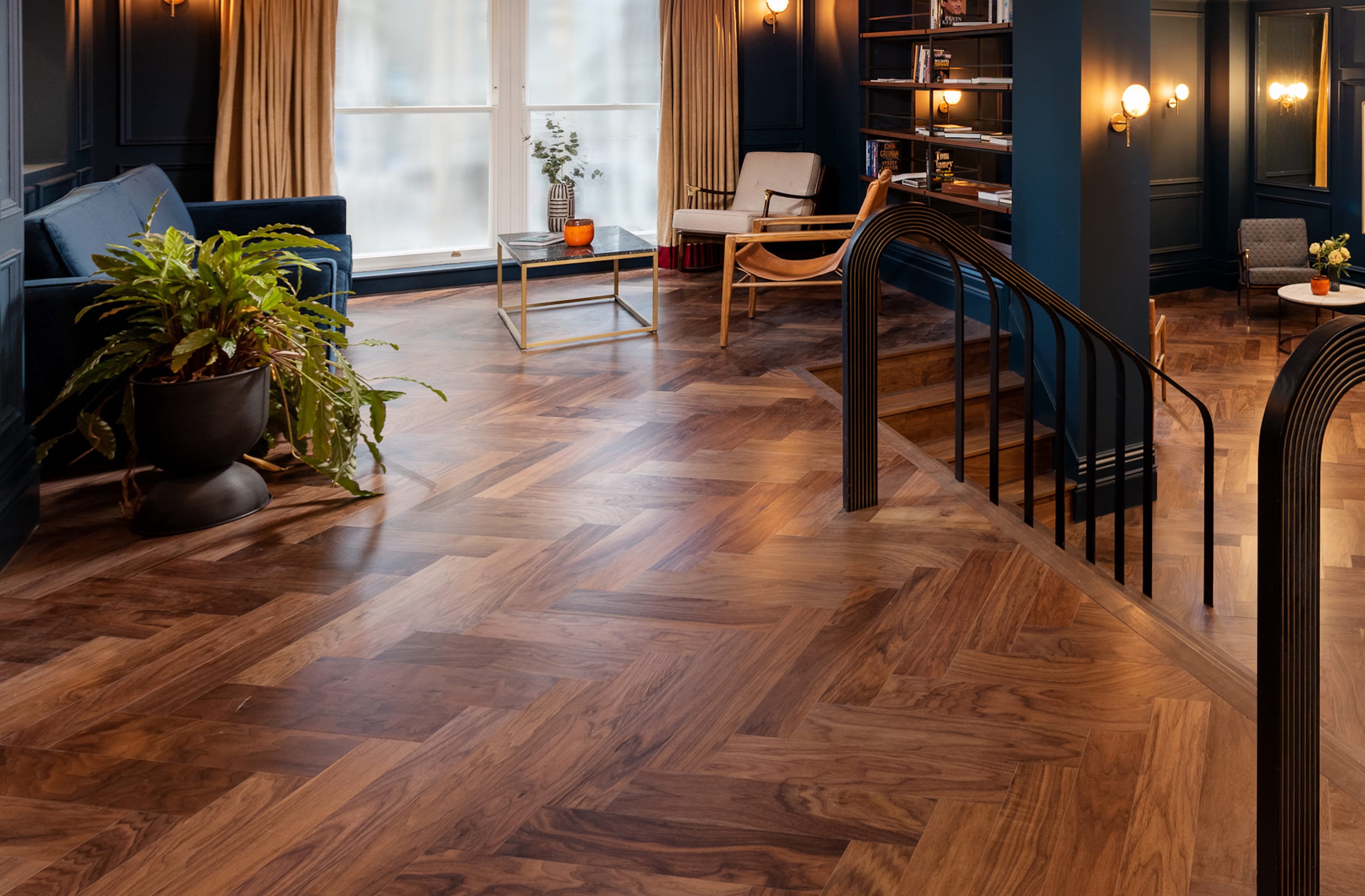 Cocoa Prime from The V Collection in a herringbone design was selected for use in this stylish development. The use of an intricate pattern combined with the rich, brown colouring of Cocoa perfectly offsets the rich use of colour throughout the property.