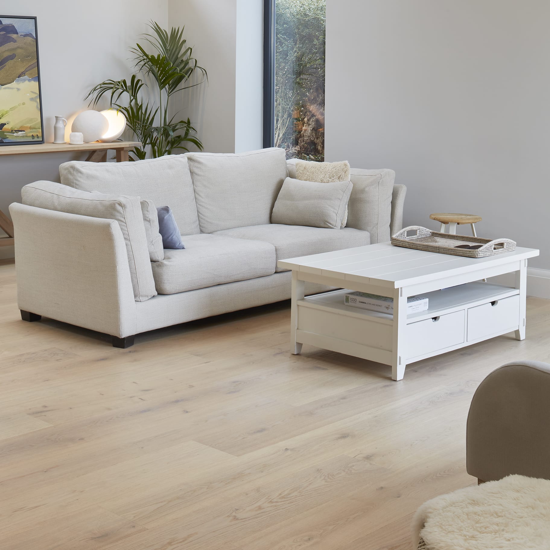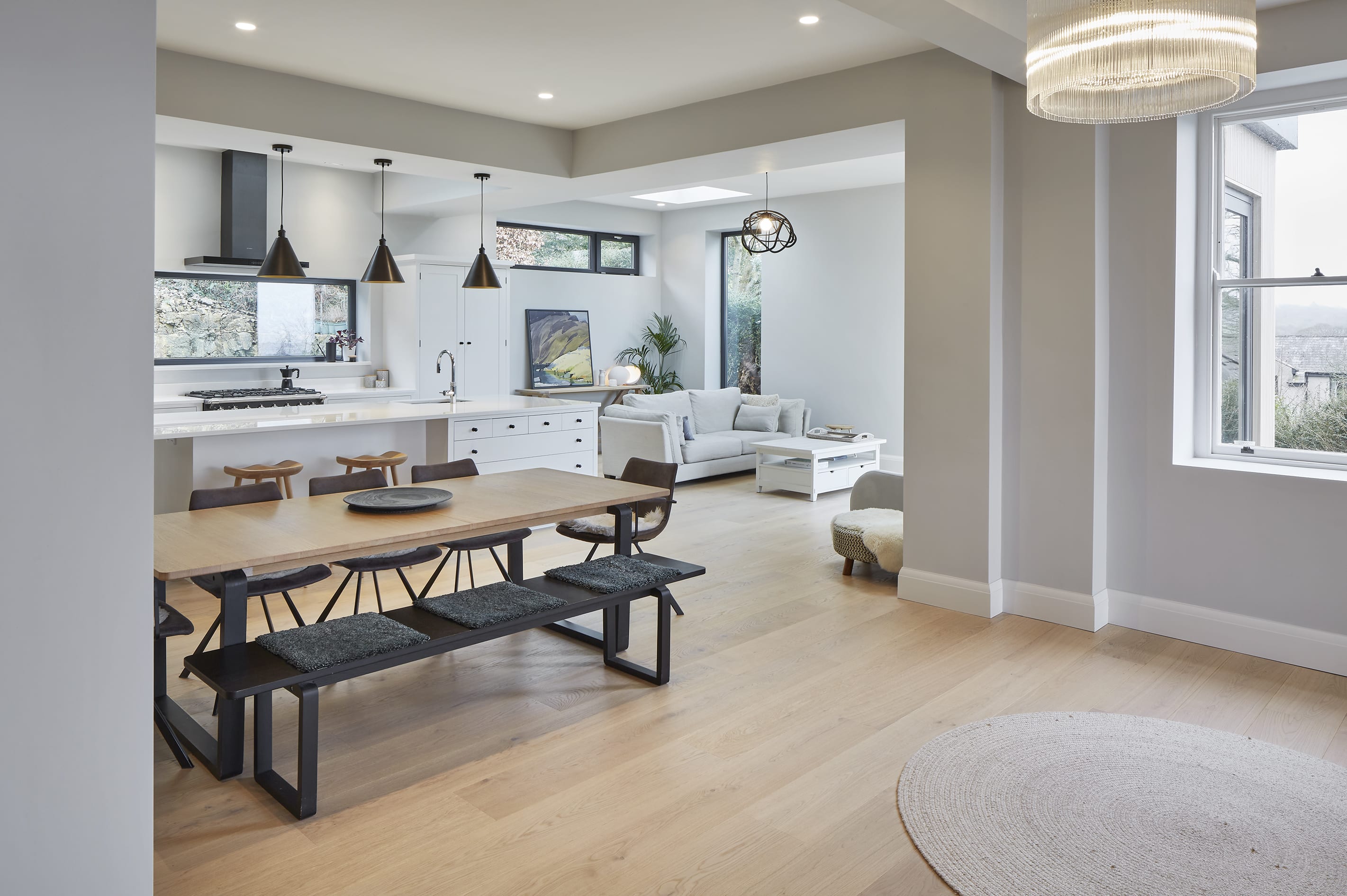 A wide board was preferred, along with a pale tone to enhance the natural light. After exploring a wide selection of options at the Carnforth showroom, the Astano flooring from Havwoods stood out as the perfect match—elegant, bright, and built to last.