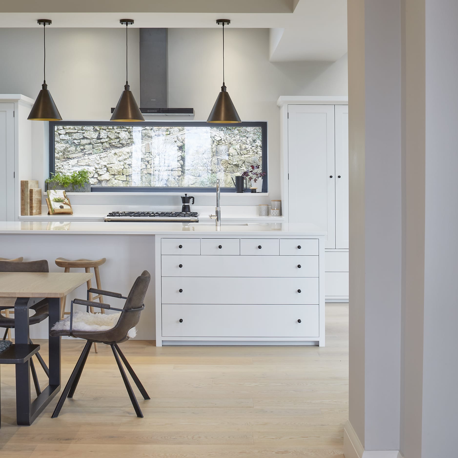 When the property was purchased, it was clear that a full renovation was needed. One of the main goals was to address layout challenges and create a large, open-plan kitchen, dining, and living area that would take advantage of the home’s stunning views across fields and Morecambe Bay.
