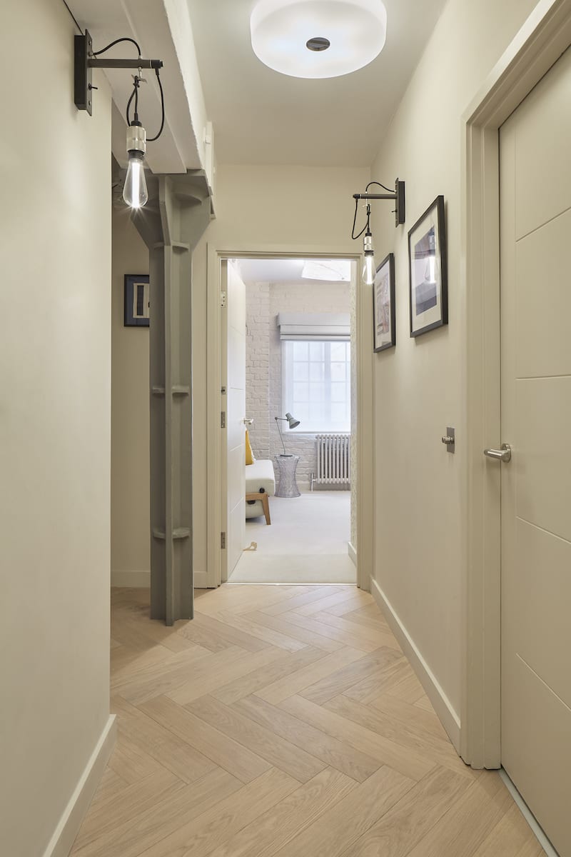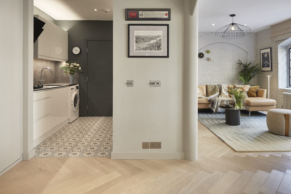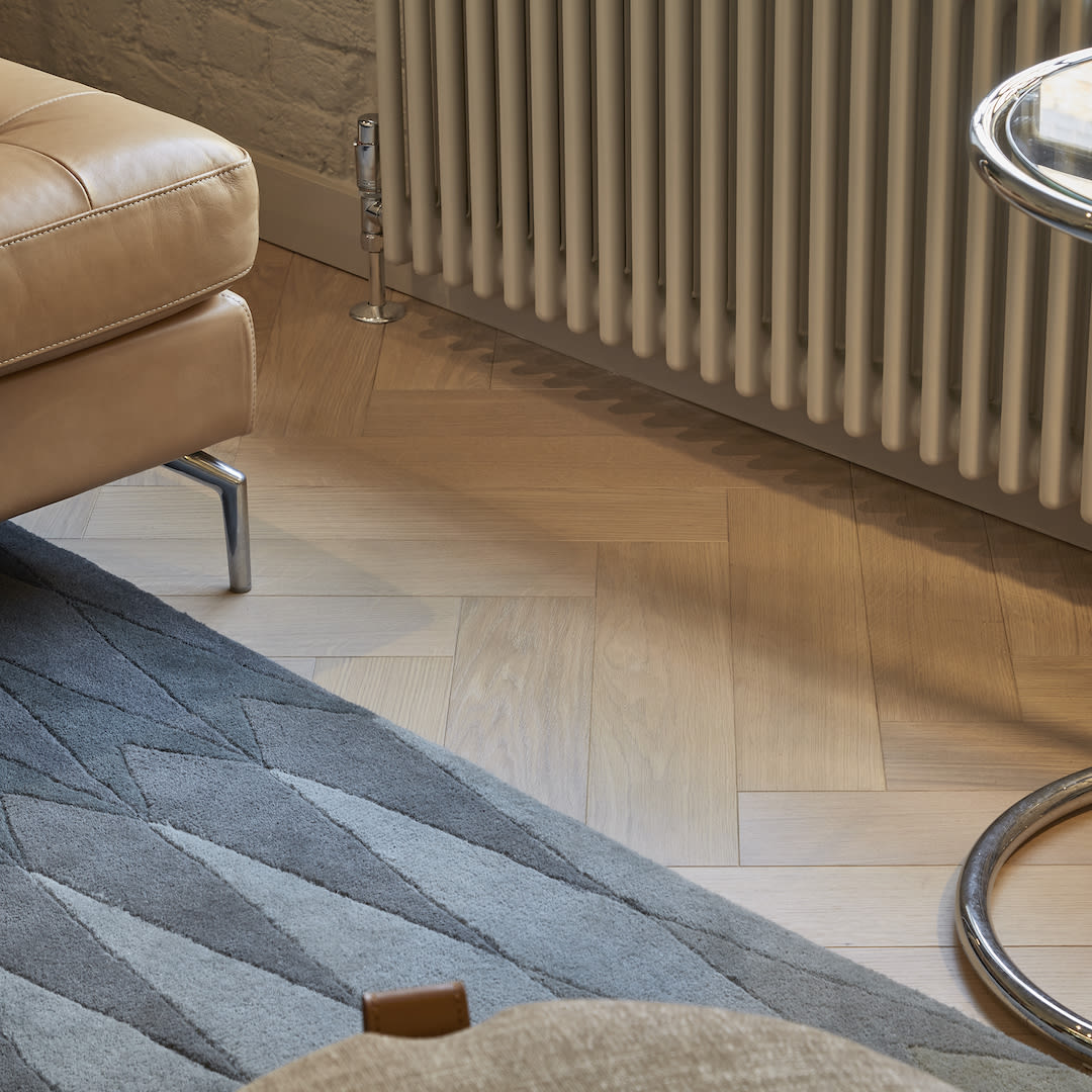 Set within a converted London warehouse, this apartment was transformed into a modern, light-filled interior using Havwoods’ Blanco Herringbone flooring. This project by Interiors by Laila combines personal touches with timeless materials to deliver a bright and characterful space.