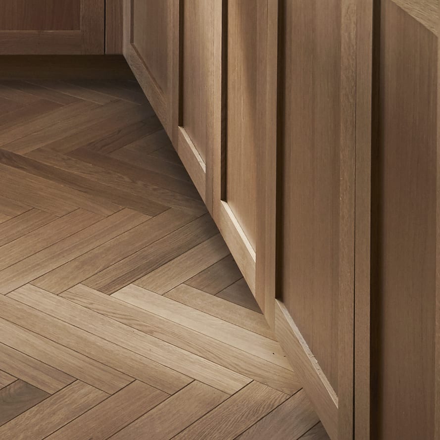 The Amalgama herringbone patterned oak flooring from Havwoods serves as the foundational thread weaving through the entirety of this pre-war penthouse in Manhattan. Its enchanting design not only elevates the aesthetic appeal but also contributes to the creation of a textured and lavish interior.