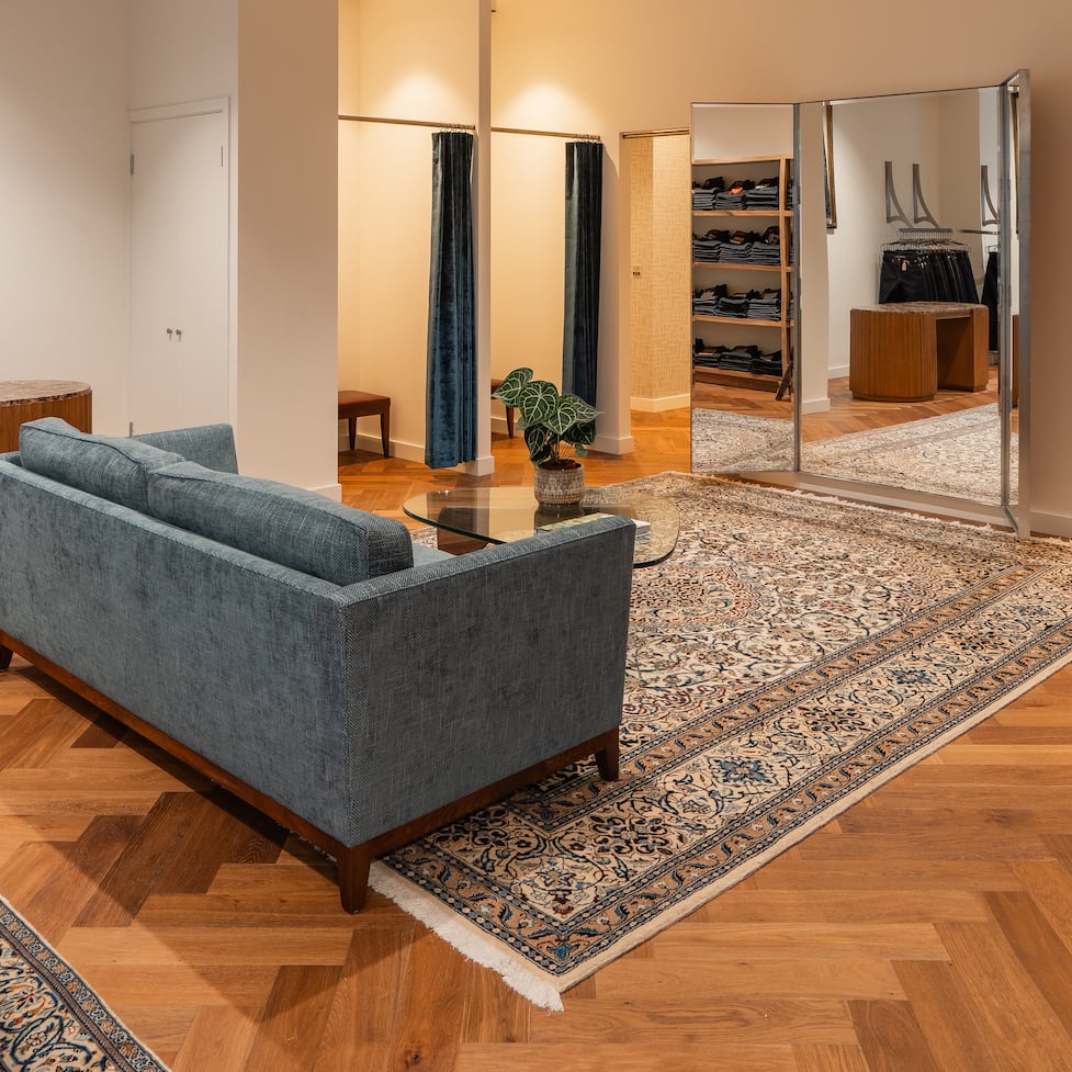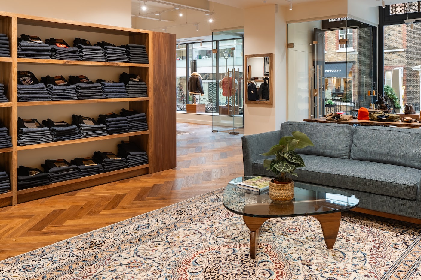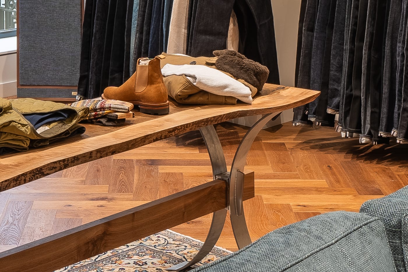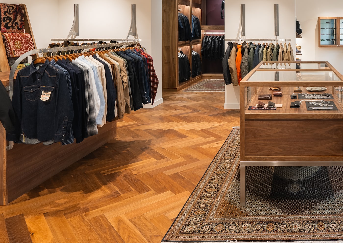 Relocating to East Mayfair’s Old Burlington Street placed Rivet & Hide in the heart of one of the world’s most renowned menswear destinations. The new store, three times the size of its Fitzrovia predecessor, provides an expansive showcase for the brand’s premium collections. The space features Havwoods Bergen Herringbone flooring throughout, complementing the timeless aesthetic that Rivet & Hide has become known for.