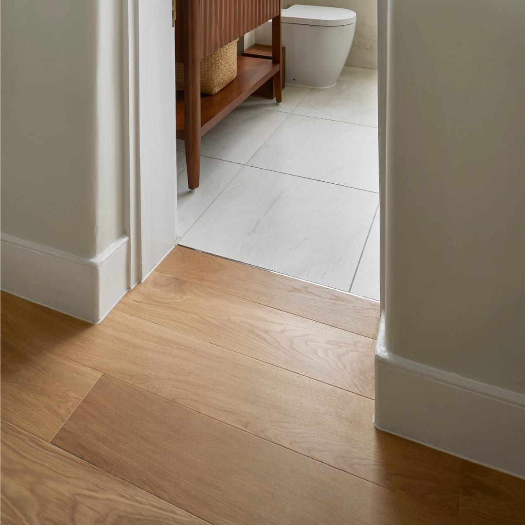 Using HW2366 Basque herringbone and HW14306 Basque planks, ARKD London precisely matched the tone and character of the existing flooring, creating a cohesive timber language throughout the home.