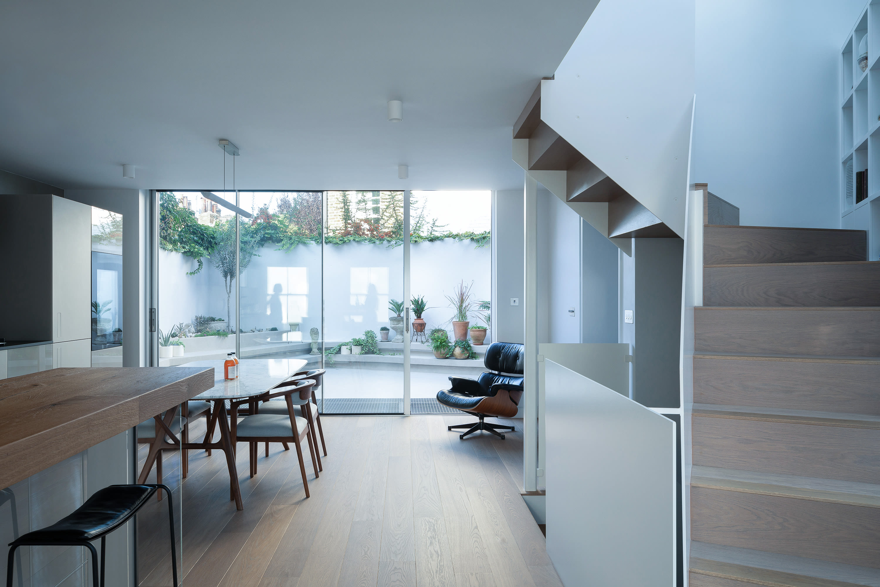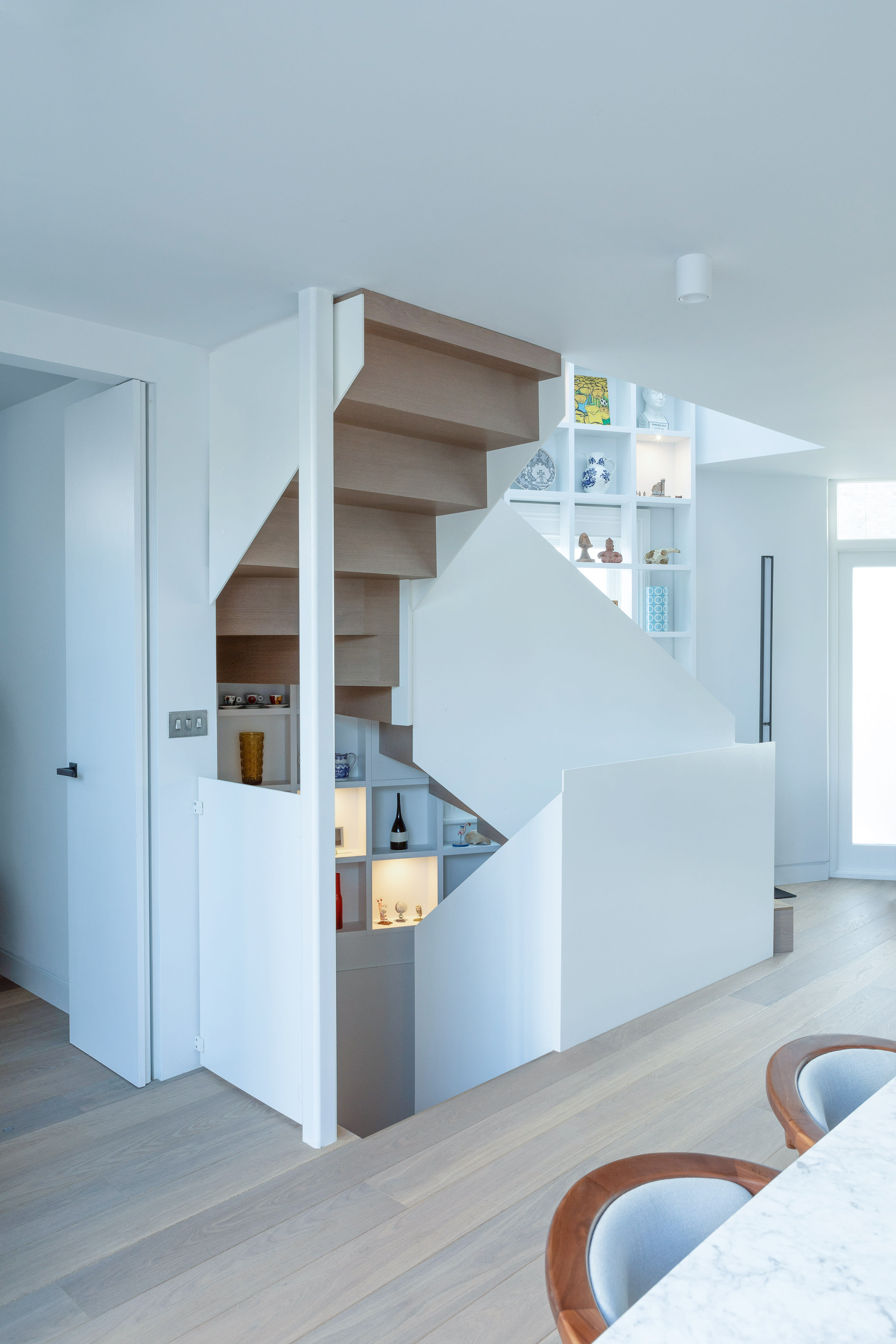 The eye-catching layout has inspired the shape of the staircase, while the void in the middle helps to bring natural light to the existing basement.