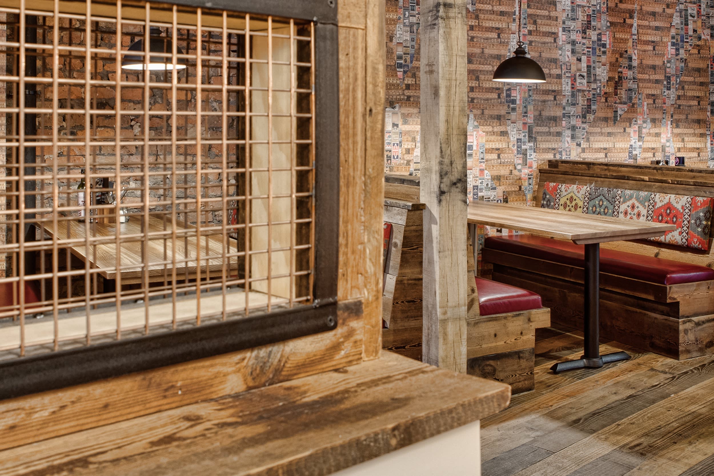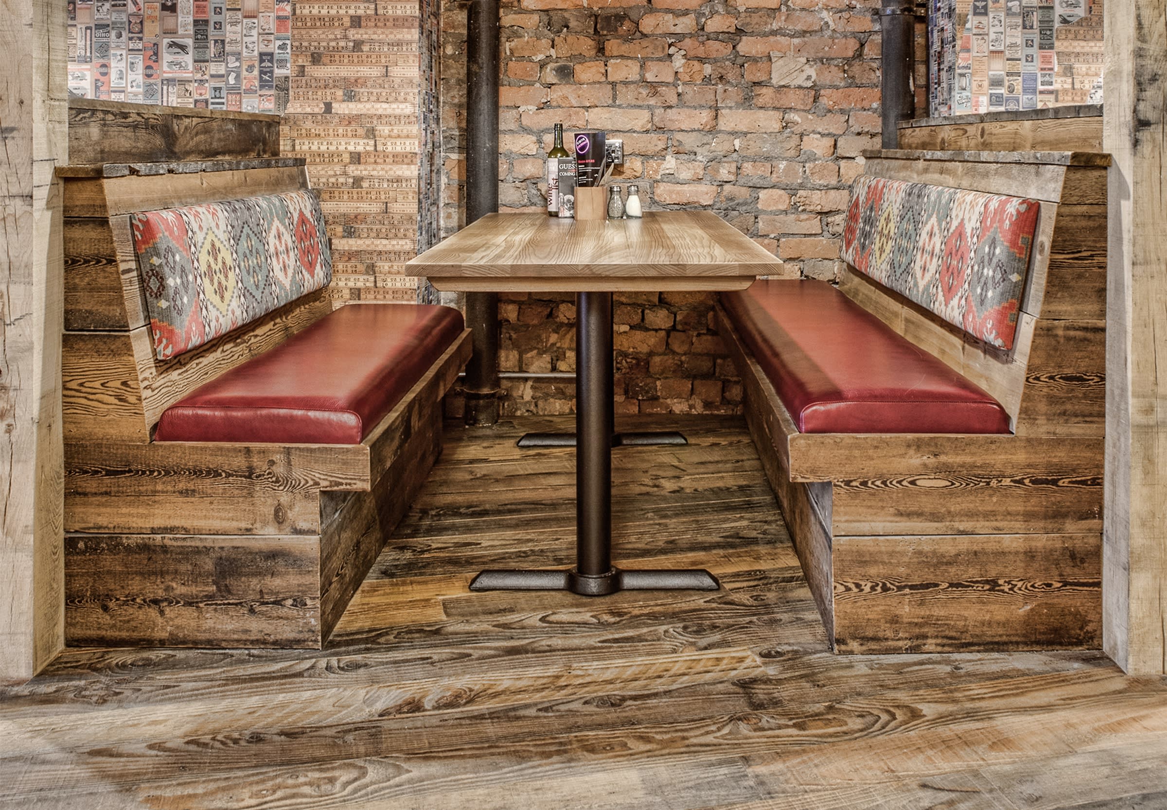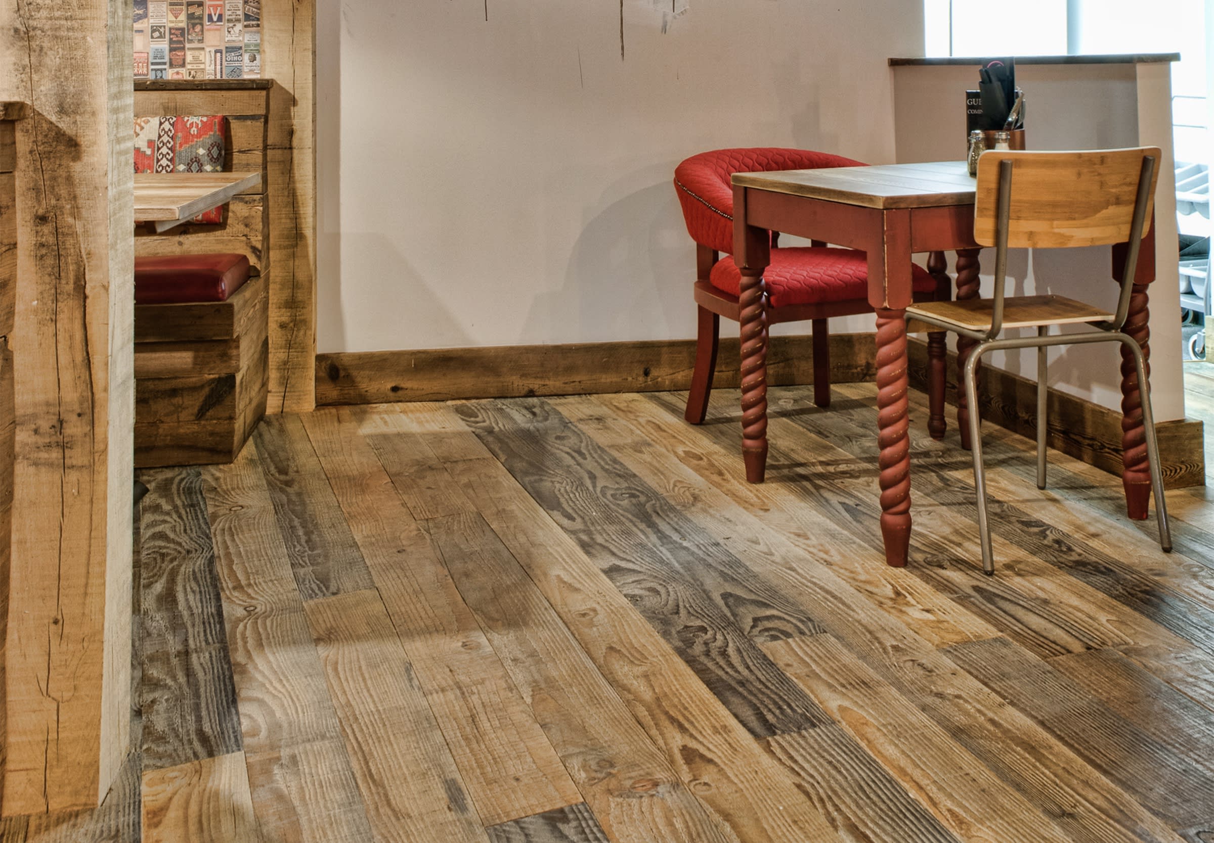 An earthy colour palette and a multitude of distressed decorative elements, including lots of Havwoods’ reclaimed timber, warm the industrial ambience and lend an eclectic air to this fairly large, open space.