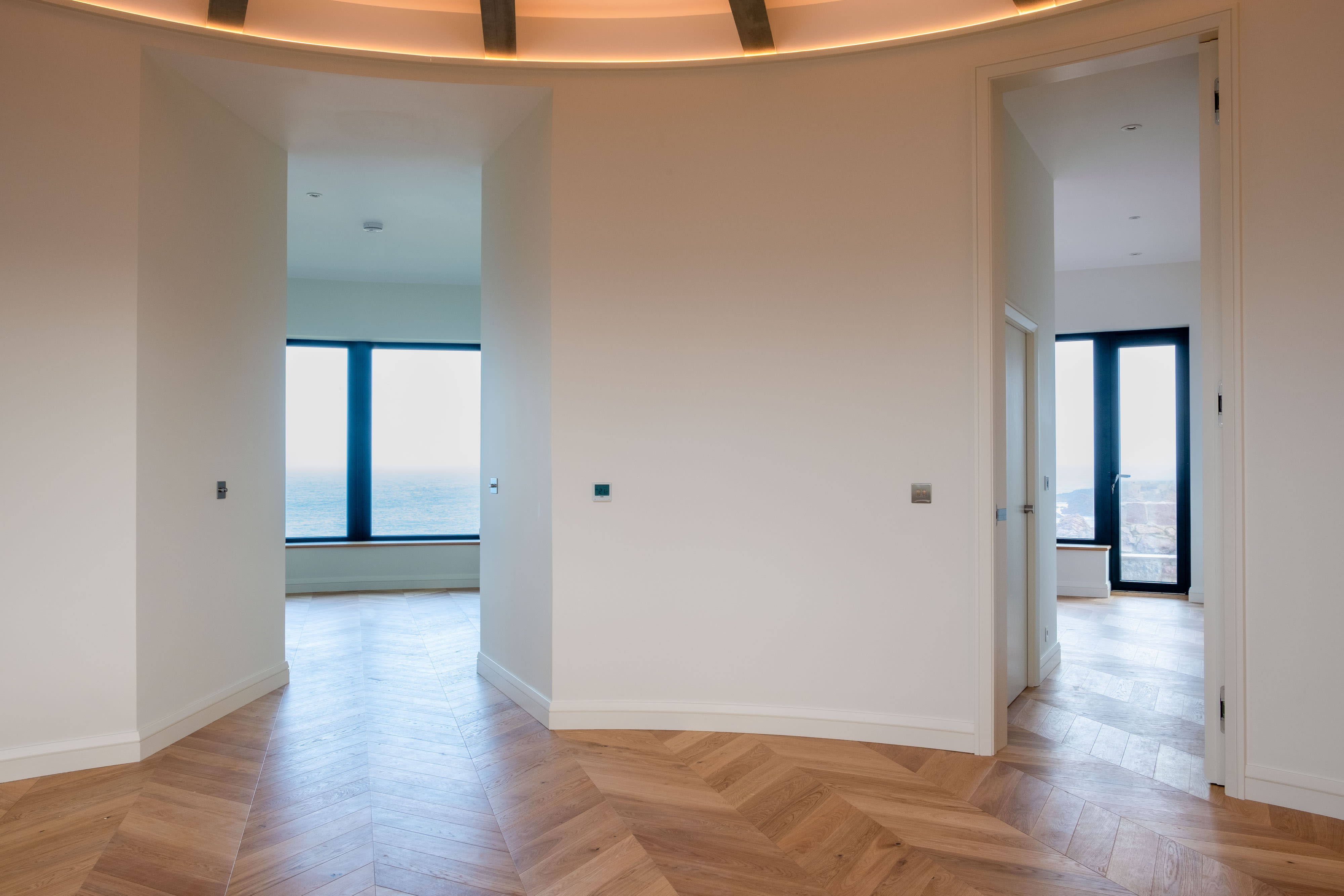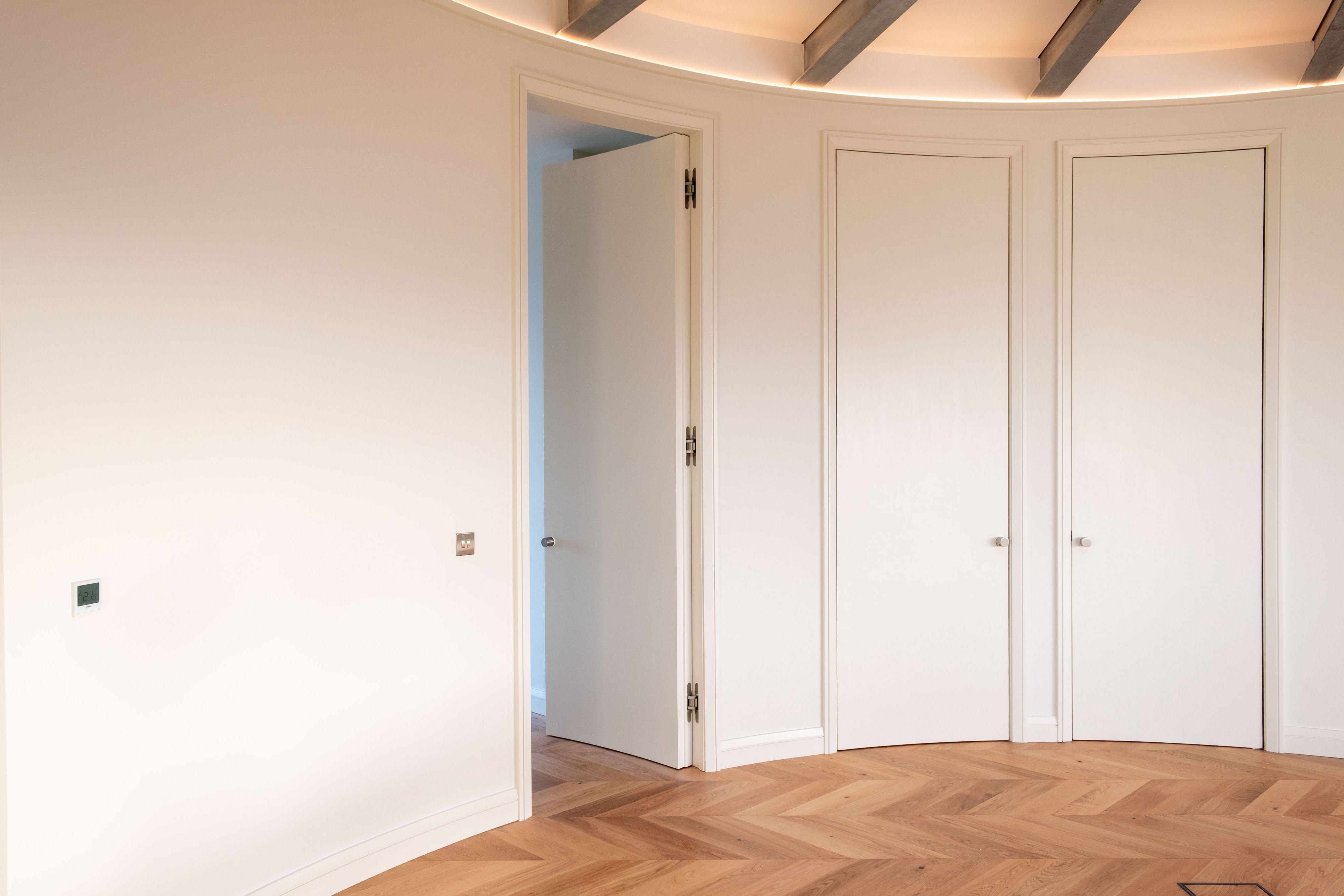 The goal was to replace and combine the fragmented structures with a new, high-quality dwelling that was sympathetic to its historic setting. The design brief needed a beautiful and functional wooden floor throughout. Special consideration was given to the fact that the building was circular and therefore had no straight lines where the parquet was to meet the wall.