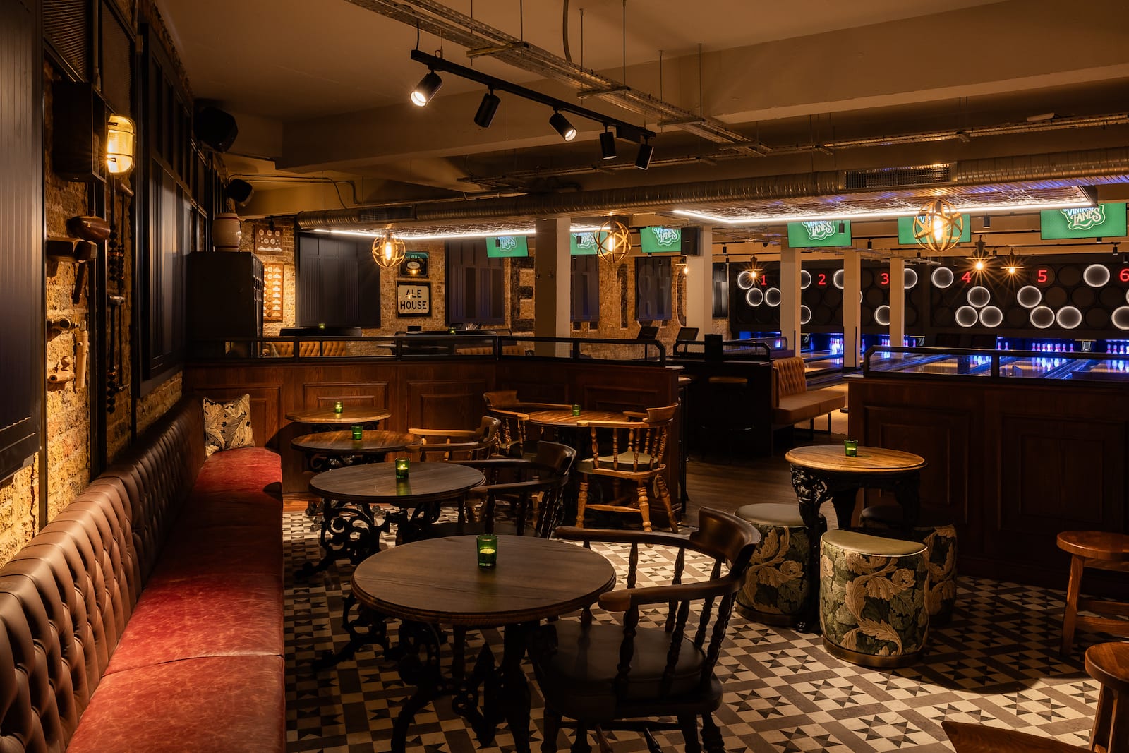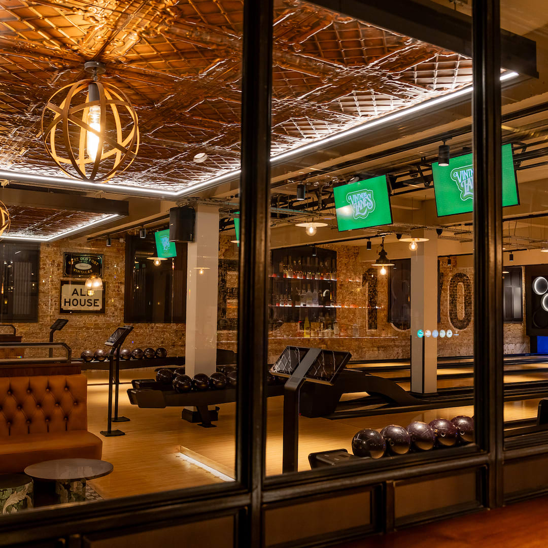 Vitners Lanes is a boutique bowling venue in Greenwich that fuses Victorian industrial charm with modern luxury, earning global acclaim for its award-winning design.