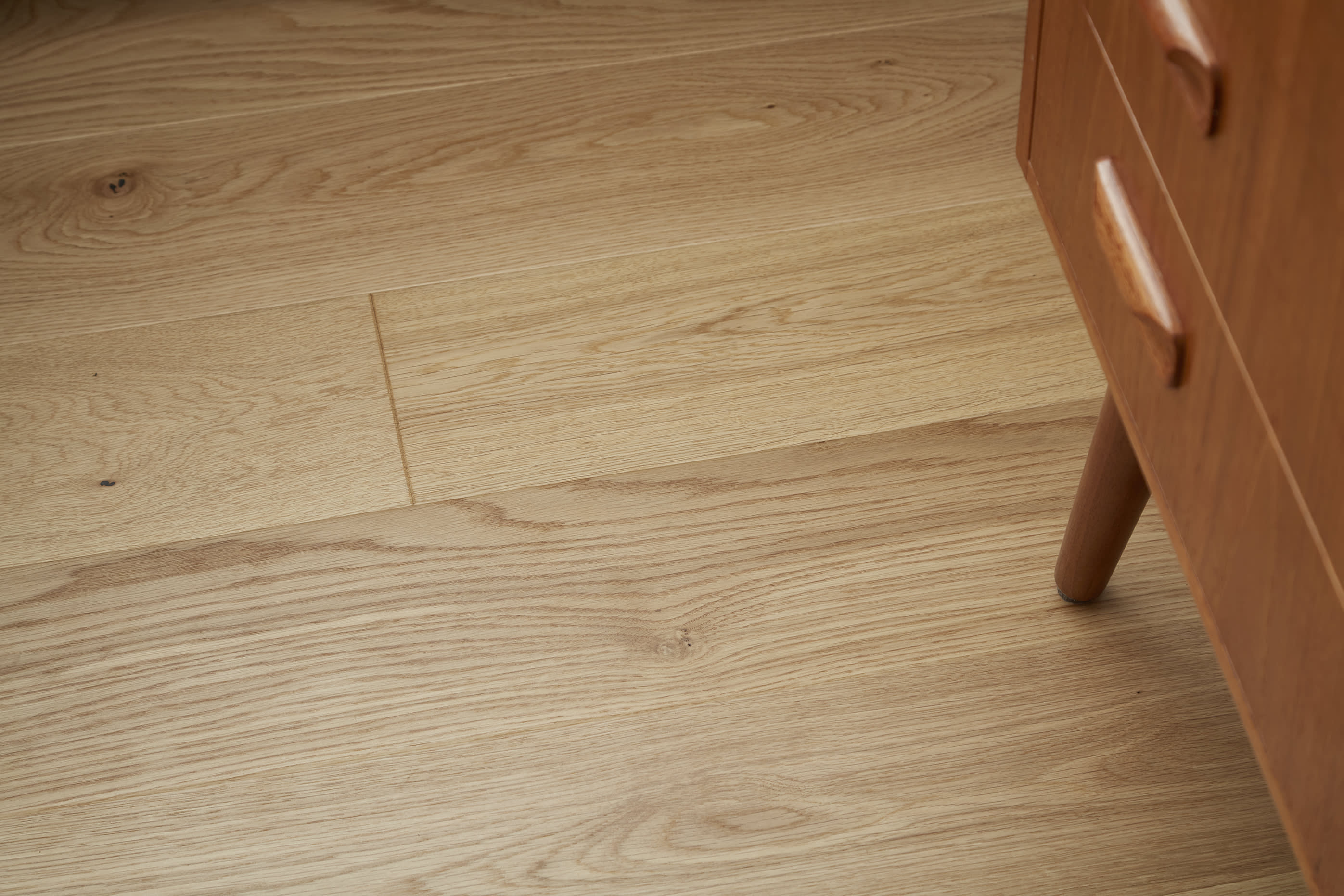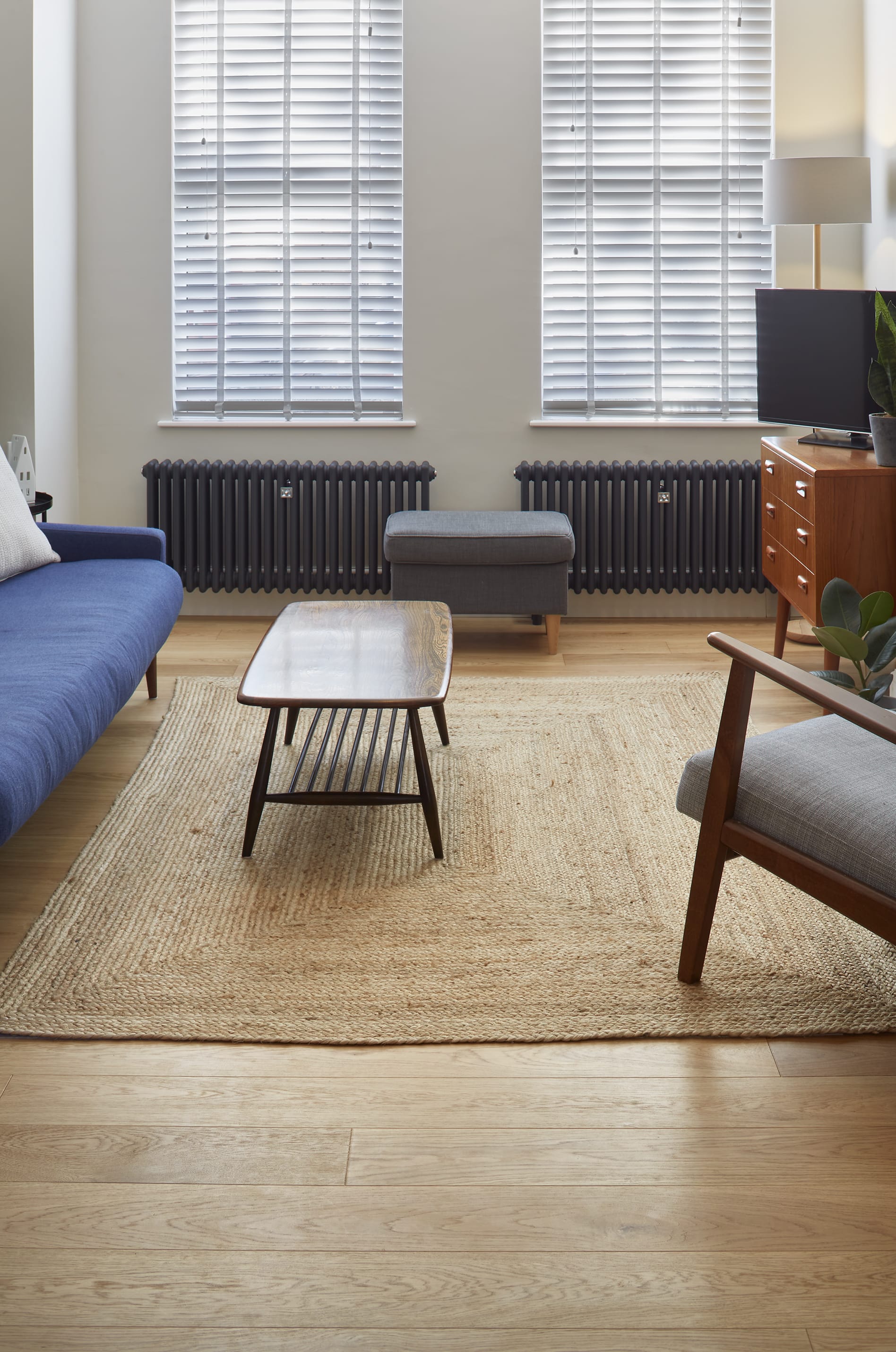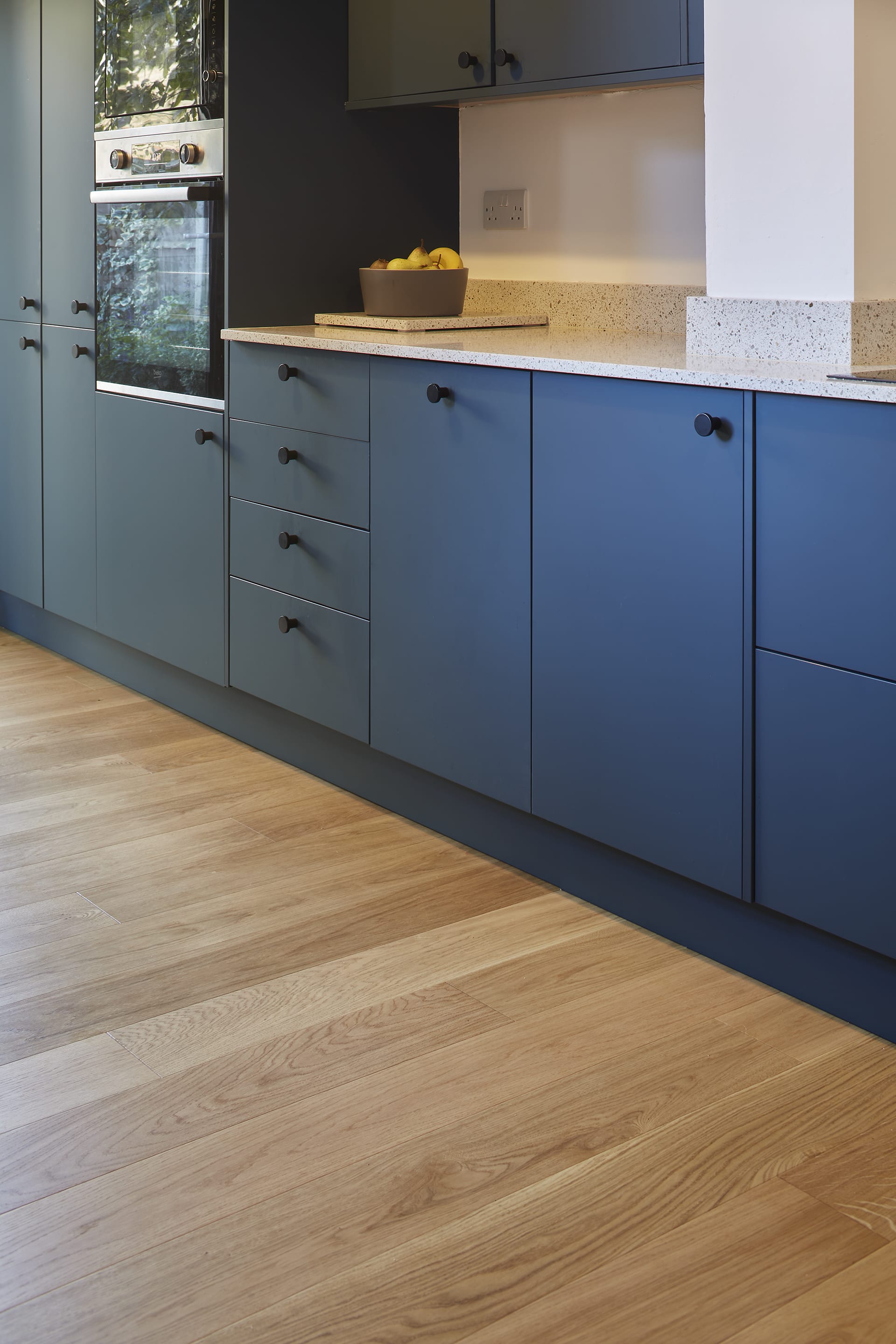 From the mid-century furniture and sand-coloured walls in the living room, to the playful dark blue cabinetry in the kitchen, the flooring offers something different in each space – while still tying the home together beautifully. The floorboards complement the style of each room perfectly, adding subtle interest and texture that creates a timeless appeal.