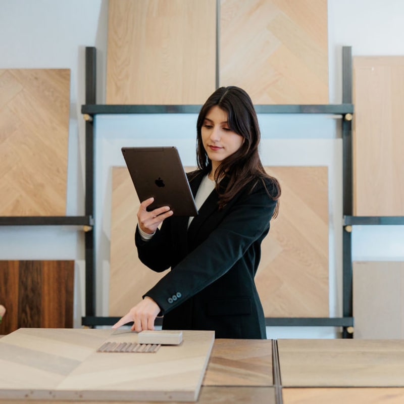 Located on King's Road, our stylish Chelsea showroom showcases a playground of full-size panels, over 450 premium flooring products and hundreds of luxury wood surfaces. Explore all our colours, patterns, species, grades and finishes with a cup of tea or coffee alongside our knowledgeable and friendly team.