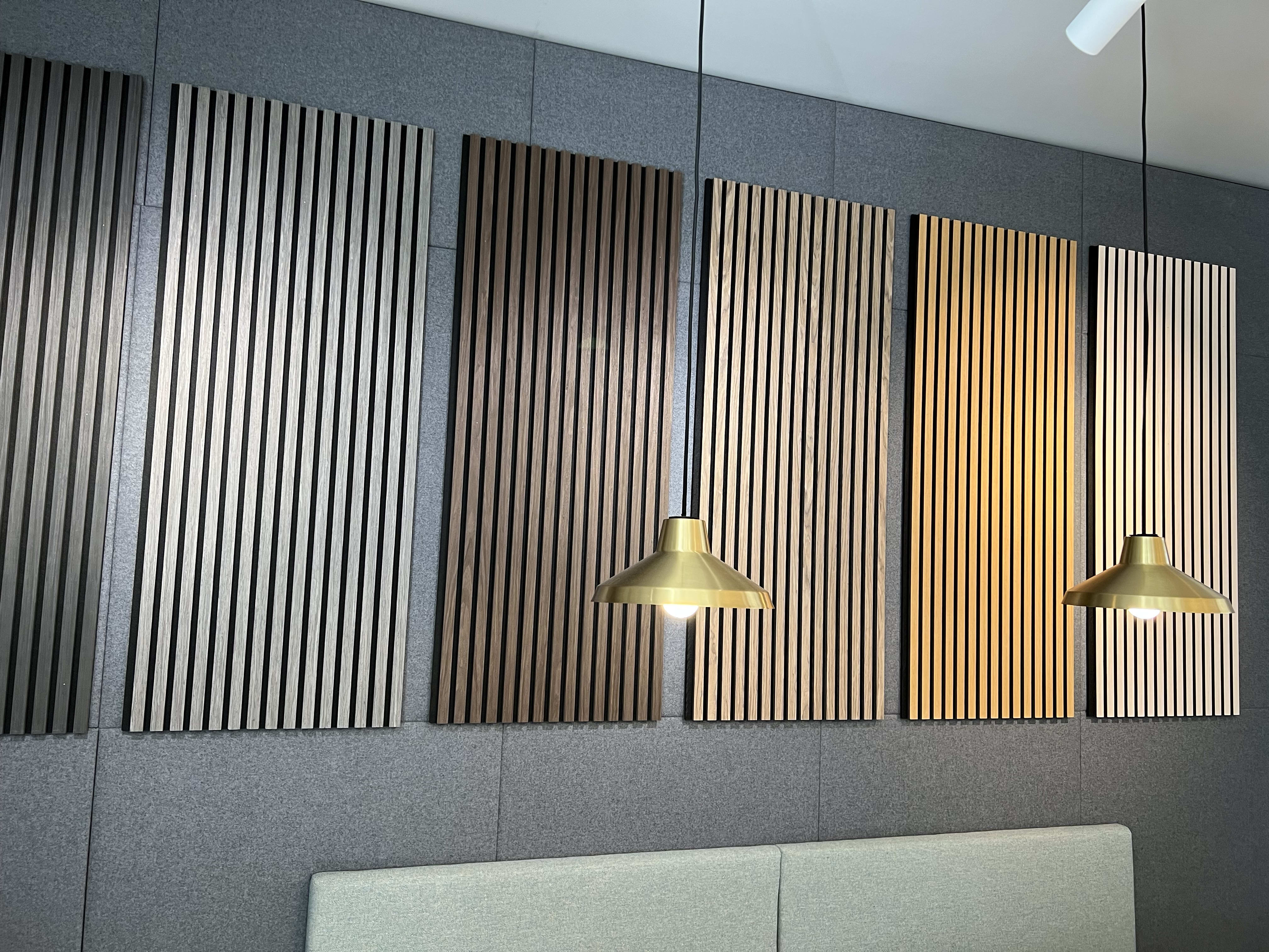 Our simple acoustic panels are designed to improve the sound quality as well as the aesthetics of your interior space. as the panels are relatively lightweight, installation is extremely easy and can be done by a person on their own. The construction comprises a polyester backing, with a black MDF core and real wood poplar surface, stained in a choice of 6 colours. When used in combination with a batten and mineral wool sub system these panels are perfect for creating a more pleasant and comfortable environment in any application.