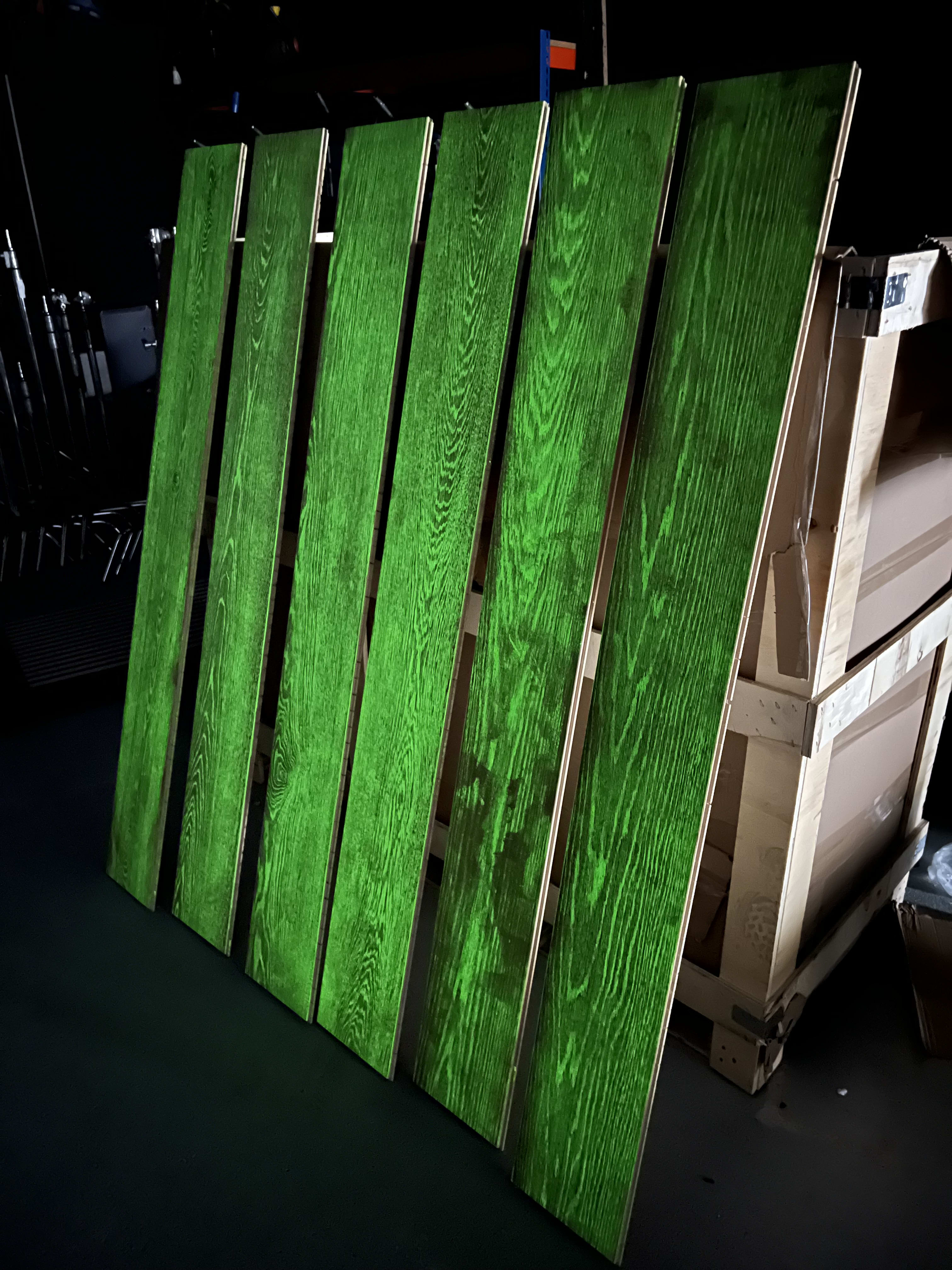 In addition to new surfaces, new finishes, and new patterns we also like to push the boundaries of innovation. Enlighten from Havwoods, offers a light reactive lacquer which when charged under light offers a glowing grain effect. We will be developing this product further and look forward to sharing it with you again once it is ready to market.