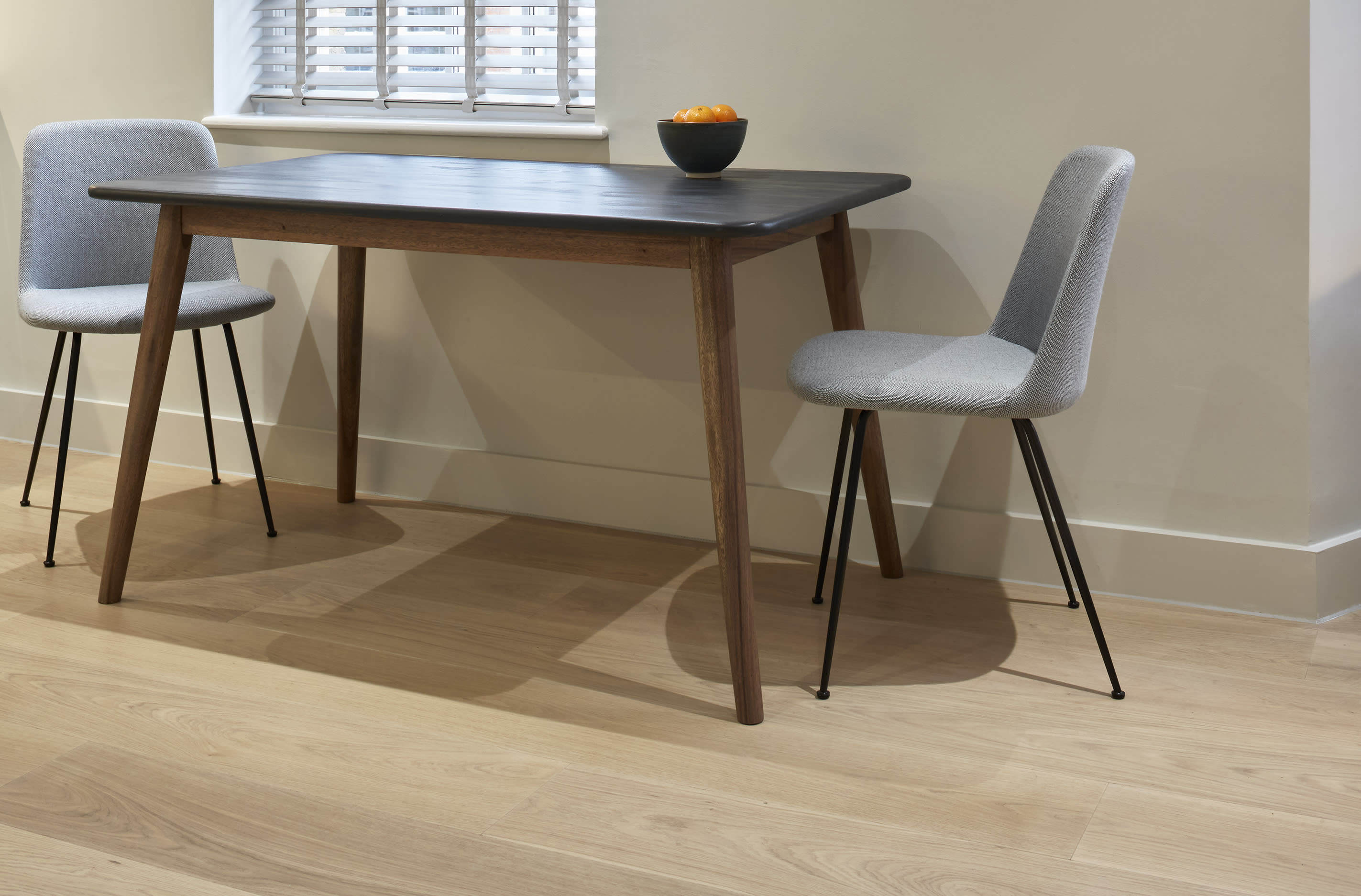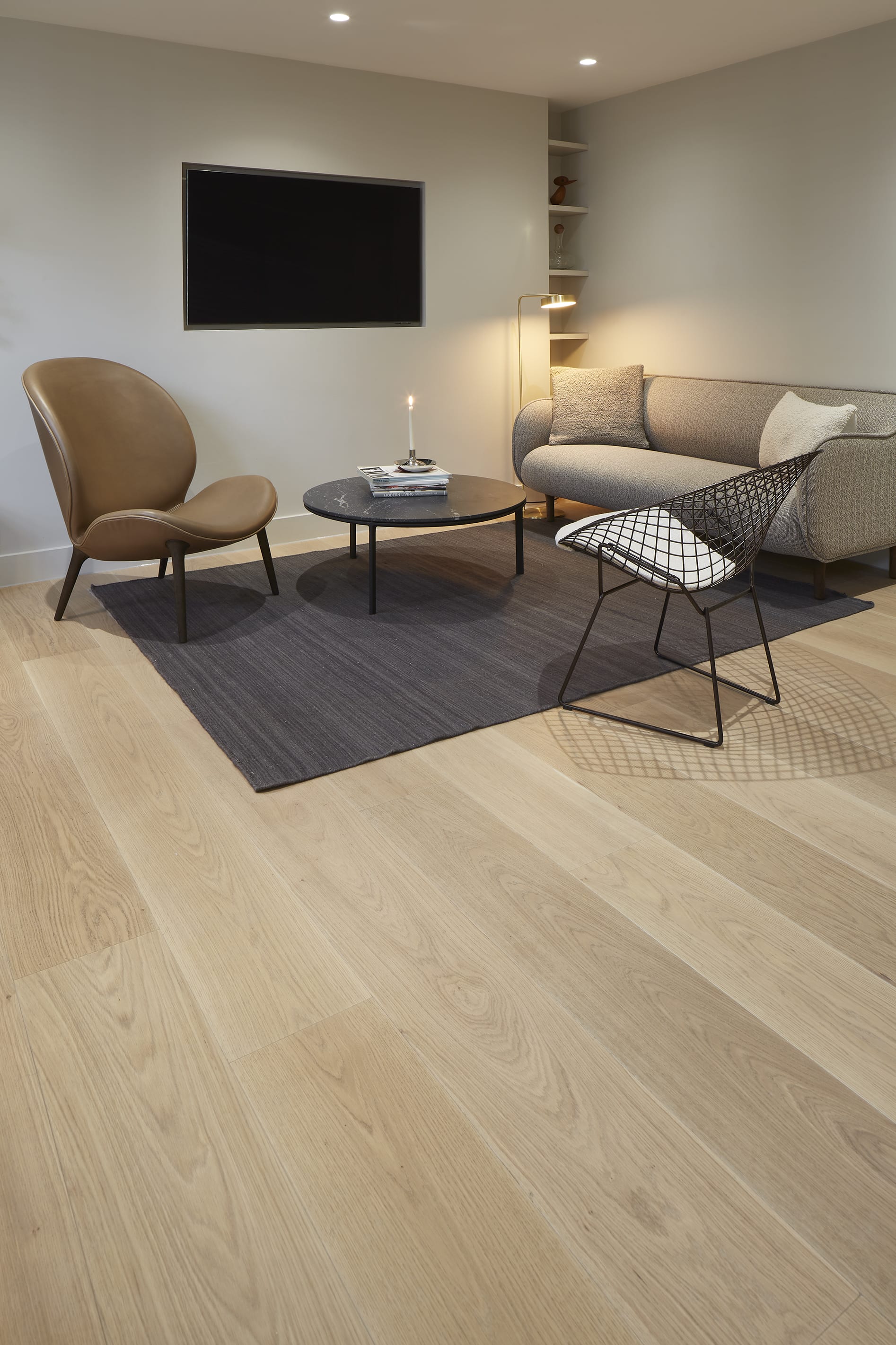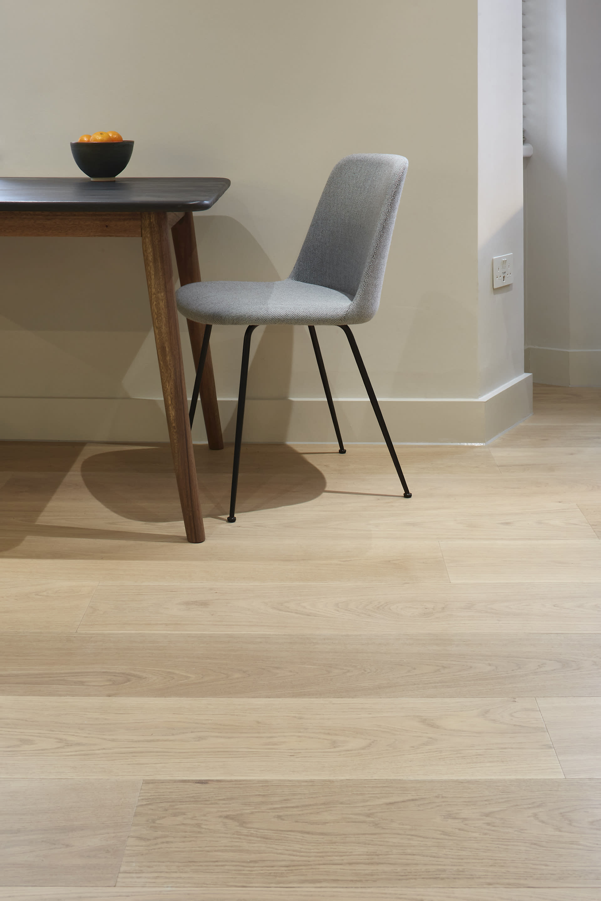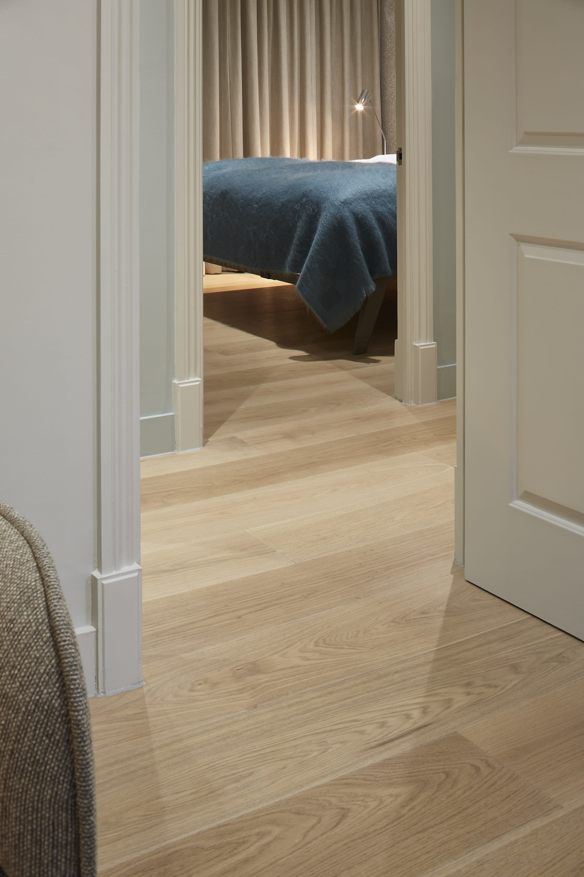 Amazon Prime in 10 1/4" (260mm) was selected for this project, with its warm wooden hues and contemporary surface appeal, these prime grade planks perfectly complement the gentle, muted color scheme chosen by the designer.