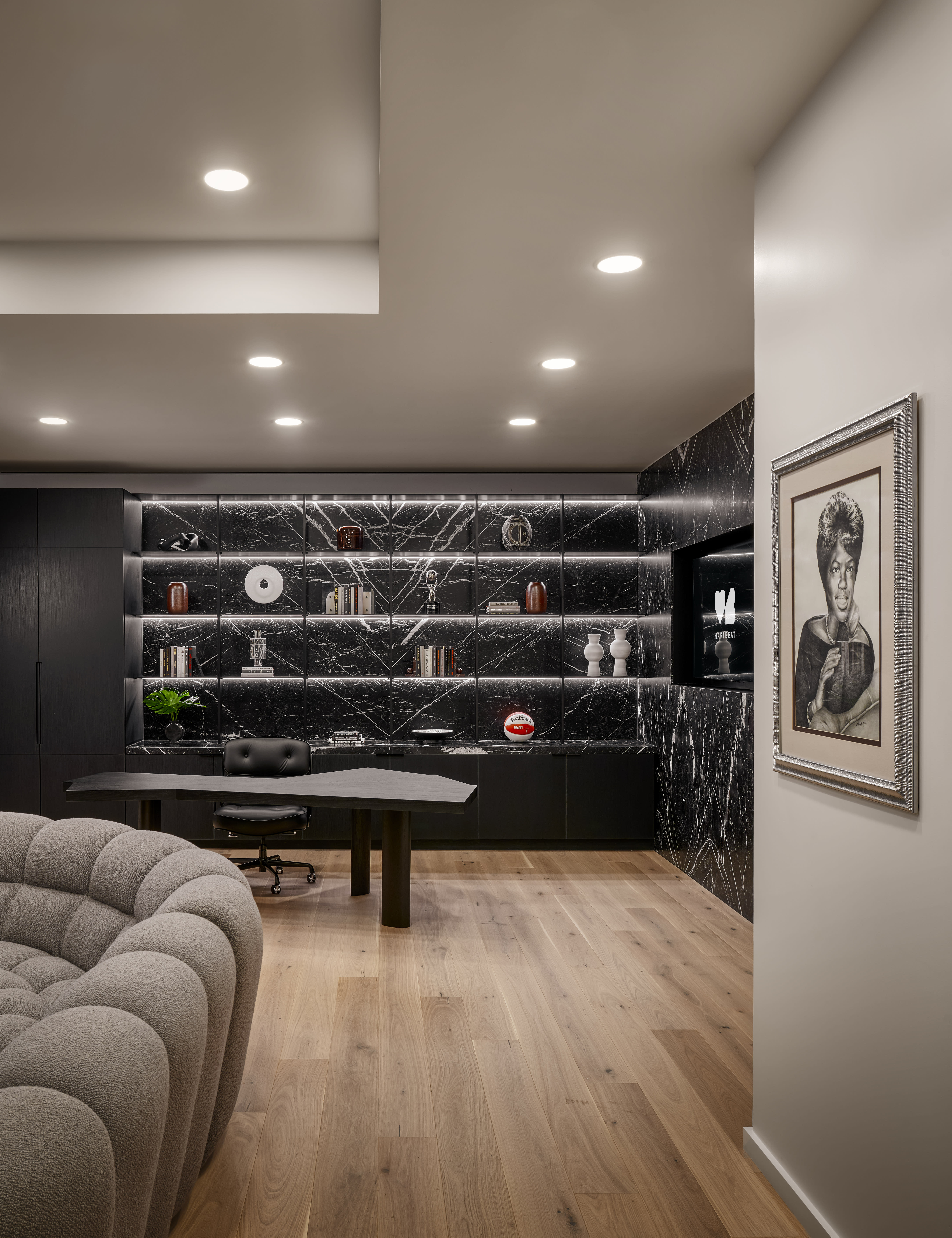 Hartbeat Studios is a multi platform entertainment company at the forefront of film, television, audio and digital storytelling. The interior of Kevin Hart’s Hartbeat Studios in West Hollywood was designed by Kai Williamson of Studio 7 Design Group, creating a workspace that balances creativity, focus and contemporary refinement.