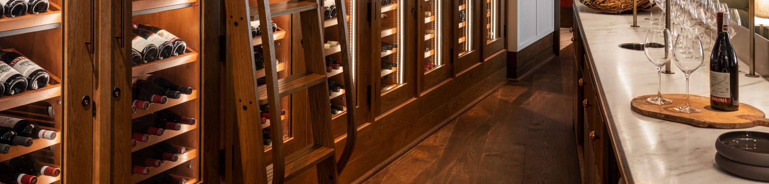 In the bar area, a custom Versailles Coffee pattern, also from the Henley collection, was specified to introduce visual rhythm and a sense of craft. Finished in a rich brunette tone, the bespoke layout adds depth and character, subtly distinguishing the bar from the dining spaces while maintaining a cohesive material story throughout.
