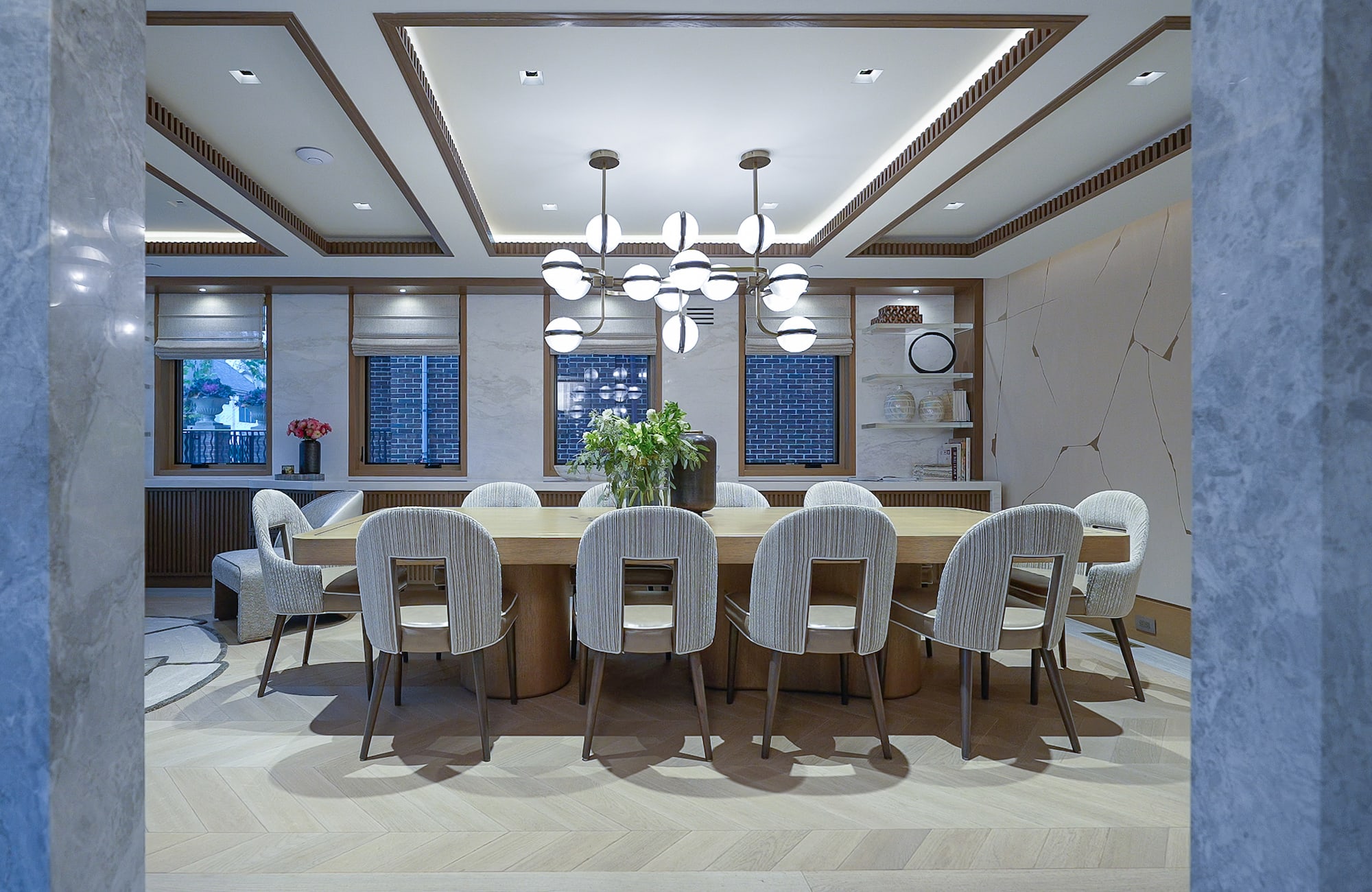 Ovadia Design has created a top-tier interior design for this magnificent residence nestled in Midwood, Brooklyn. Upon stepping into the combined dining and living room area, guests are immediately welcomed by two bespoke marble columns with ornate brass screens.