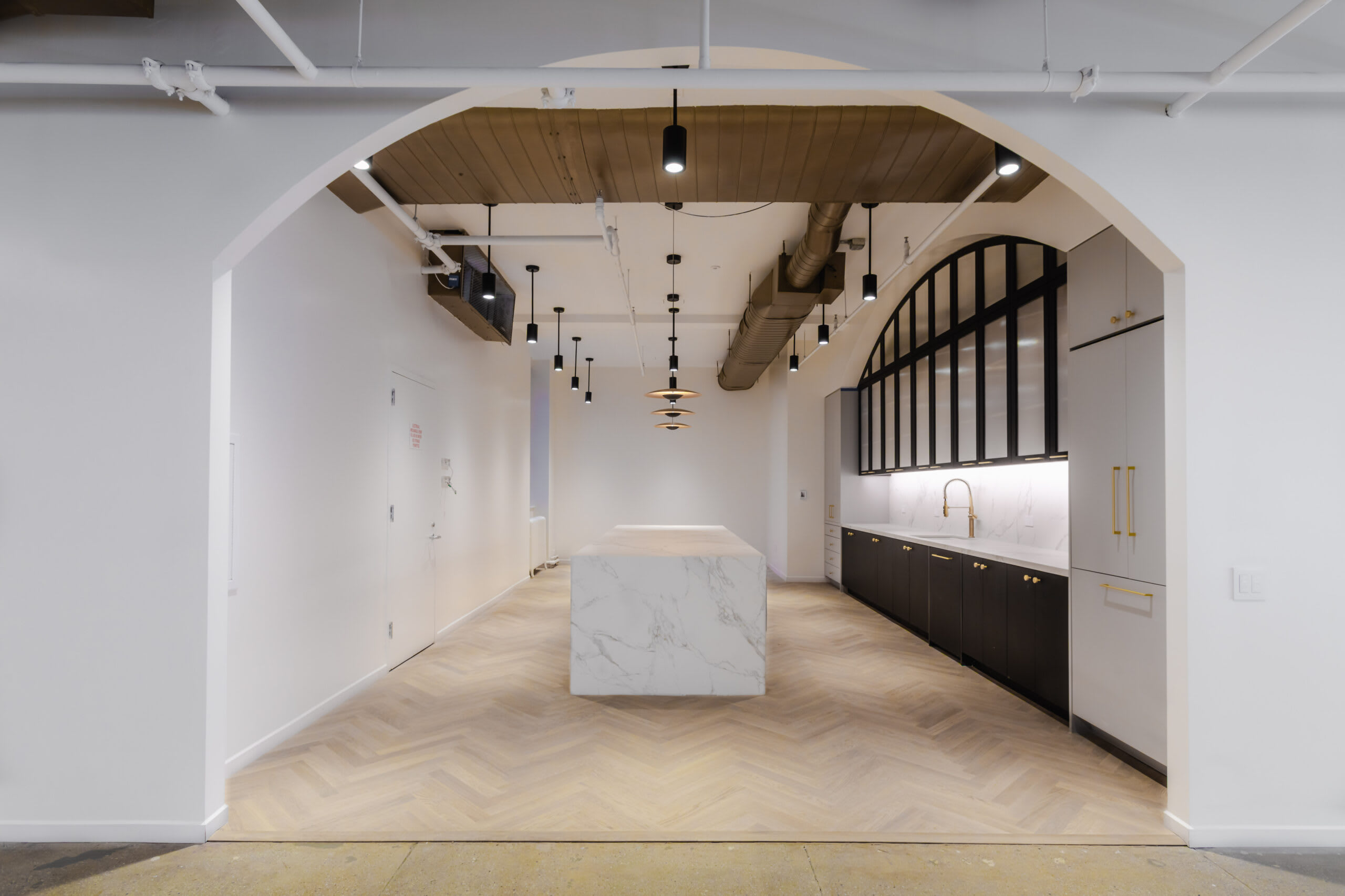Columba (HW16009P) from the Italian Collection was selected throughout the workspace. The prime grade European oak flooring features a soft platinum tone that enhances natural light and complements the neutral palette of the interiors. Installed in a classic herringbone pattern, Columba adds subtle movement and texture without overwhelming the architecture.