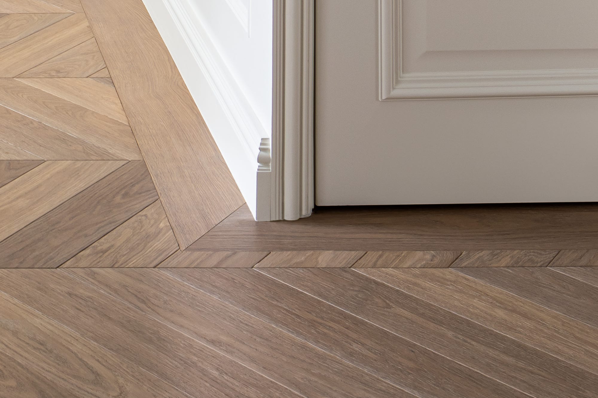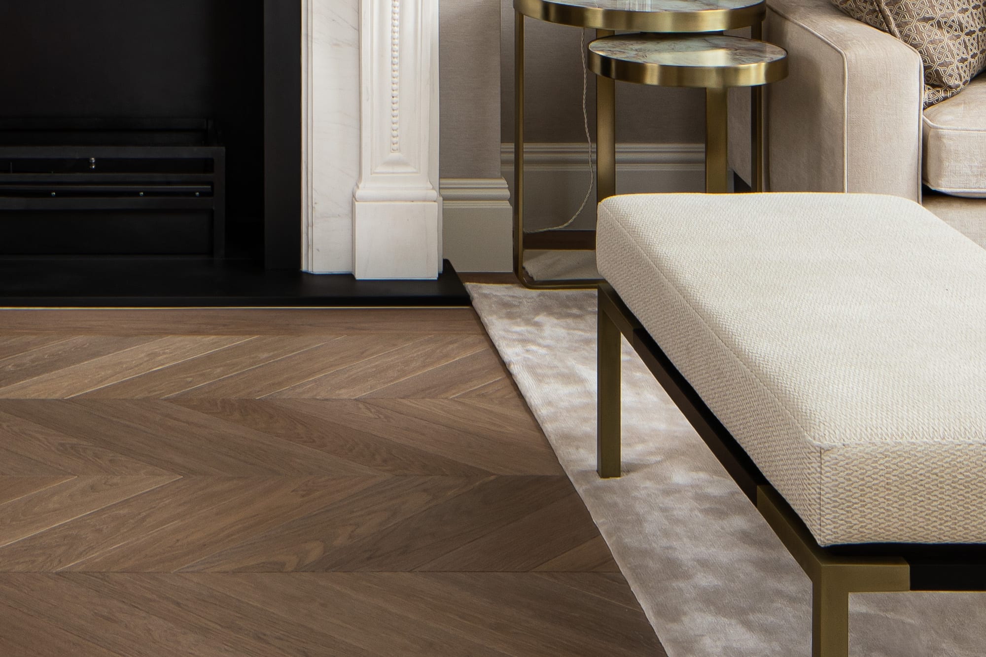 Havwoods’ stunning Fendi Prime Chevron flooring was been specified for its timeless appeal, bringing a fresh new look to the space. This surface has been incorporated into the main living area and dining room where more contemporary finishes have been used to create a seamless look throughout.