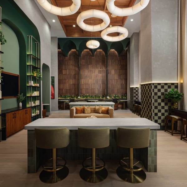 At Solis Peachtree Corners in Georgia, elevated apartment living is expressed through thoughtful design, warm materiality, and carefully curated communal spaces. The project features a modern, refined rustic interior design scheme that blends urban sophistication with natural, calming elements. Developed by Cooper Carry, the design emphasizes bringing the outdoors in using aged stones, patina metals, and botanical, soothing textures. Designed to foster connection and comfort, the shared amenity areas balance hospitality inspired aesthetics with the durability required for everyday residential life.