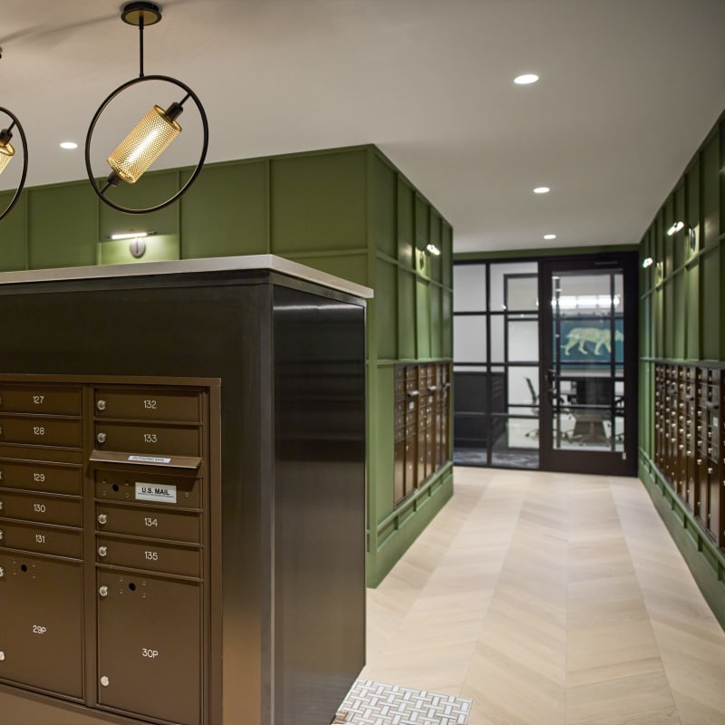 In the post room, Blanco prime grade chevron (HW3436) introduces subtle pattern and movement. The chevron layout elevates this functional space, transforming it into a considered design moment that reflects the overall sophistication of the development.