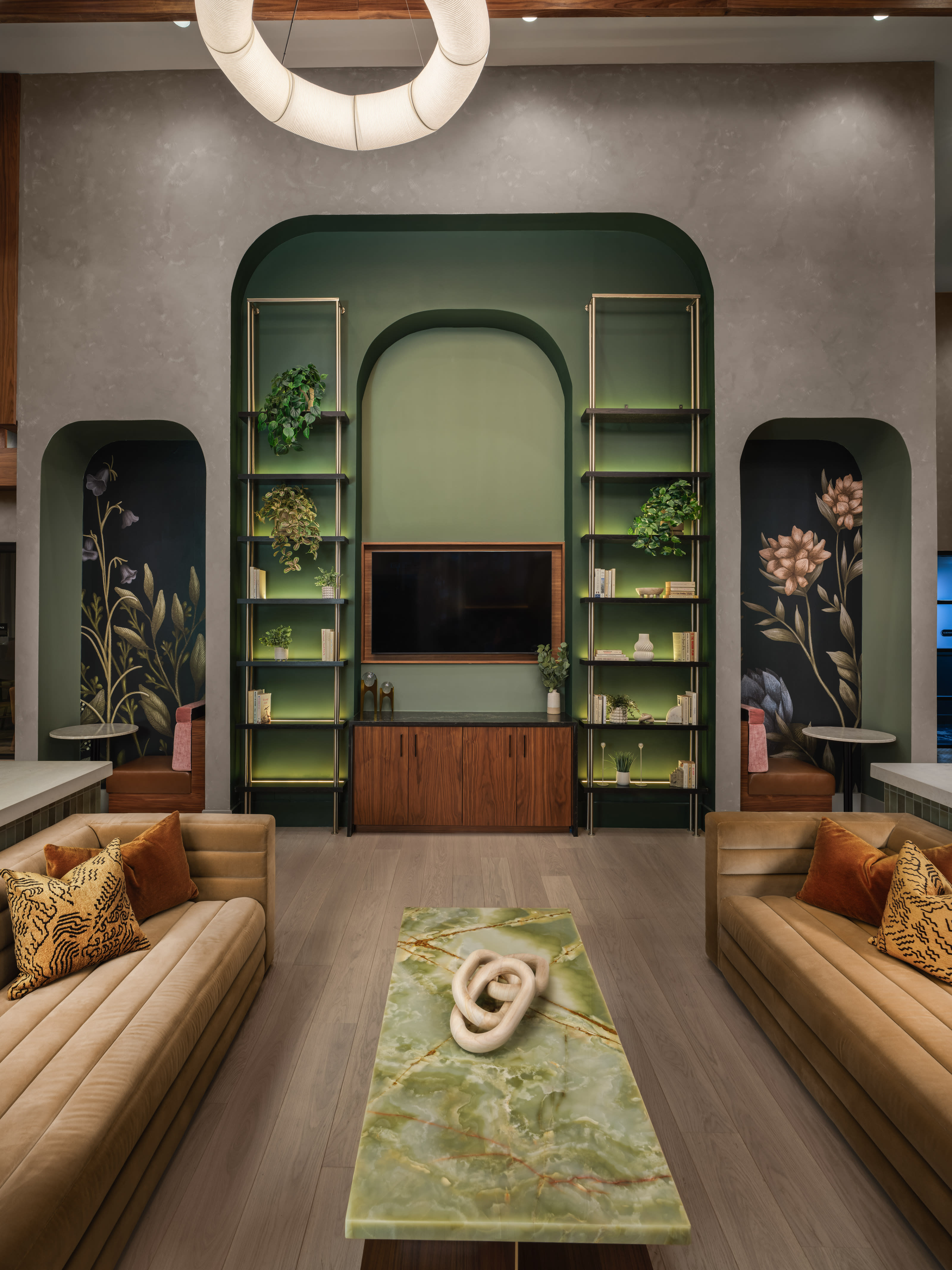 At Solis Peachtree Corners in Georgia, elevated apartment living is expressed through thoughtful design, warm materiality, and carefully curated communal spaces. The project features a modern, refined rustic interior design scheme that blends urban sophistication with natural, calming elements. Developed by Cooper Carry, the design emphasizes bringing the outdoors in using aged stones, patina metals, and botanical, soothing textures. Designed to foster connection and comfort, the shared amenity areas balance hospitality inspired aesthetics with the durability required for everyday residential life.