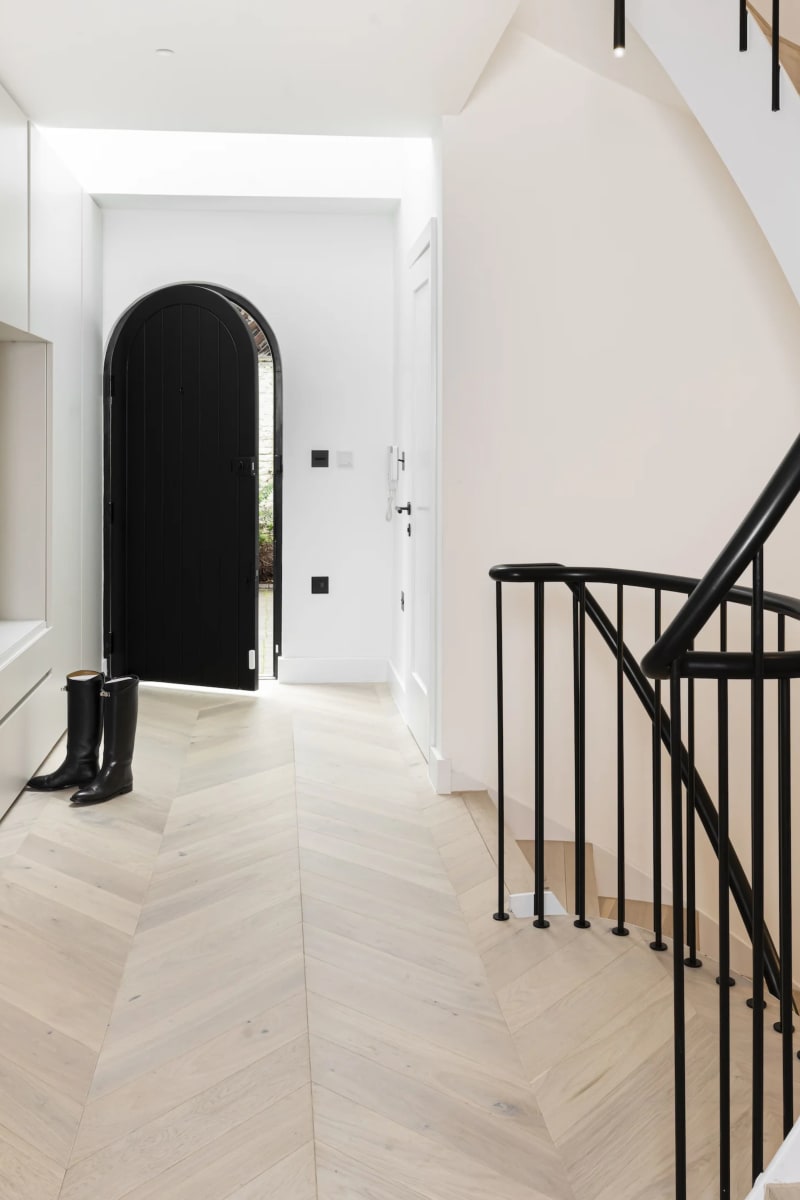 If herringbone feels a little too classic, chevron might be the perfect alternative. It’s similar, but with one key difference—the planks are cut at an angle, meeting in a sharp, continuous “V” shape. This makes for a much cleaner, more structured look that instantly feels polished. It’s one of those patterns that works just as well in a sleek, modern space as it does in a more traditional setting. And if you really want to push the design, consider mixing wood tones to add some contrast. Looking for some inspiration? Check out our guide.